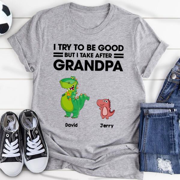 Custom Personalized Dinosaur T-Shirt – Gift For Dinosaur Lover – I Try To Be Good But I Take After Grandpa