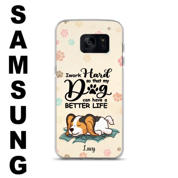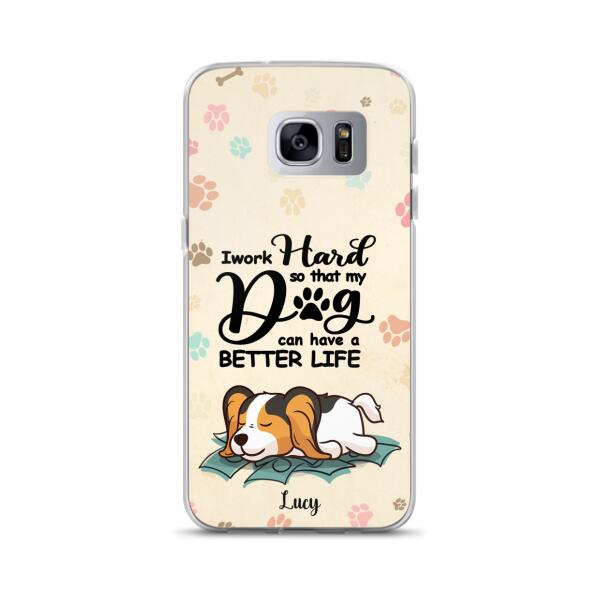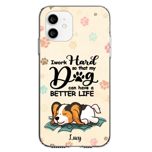 Custom Personalized Dog Phone Case – Best Gift Idea For Dog Lovers With Upto 6 Dogs – I Work Hard So That My Dogs Can Have A Better Life – Case For Iphone, Samsung And Xiaomi