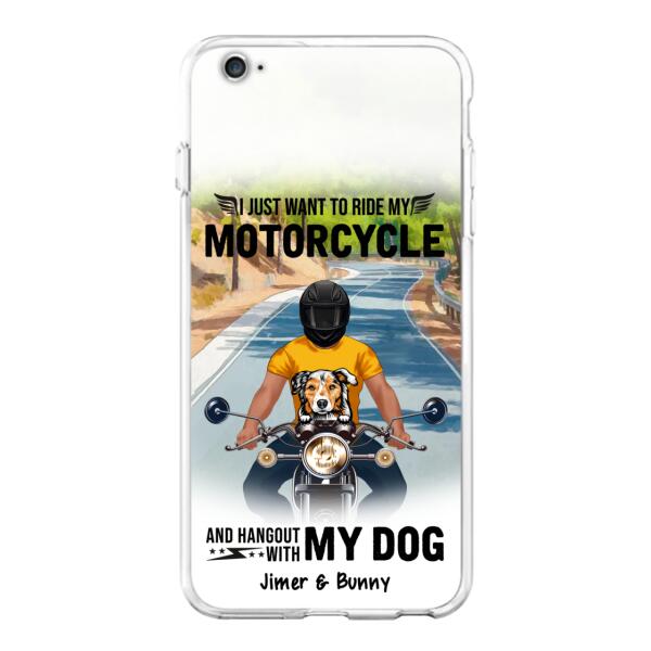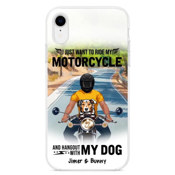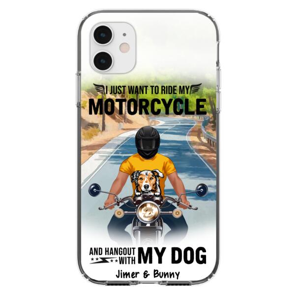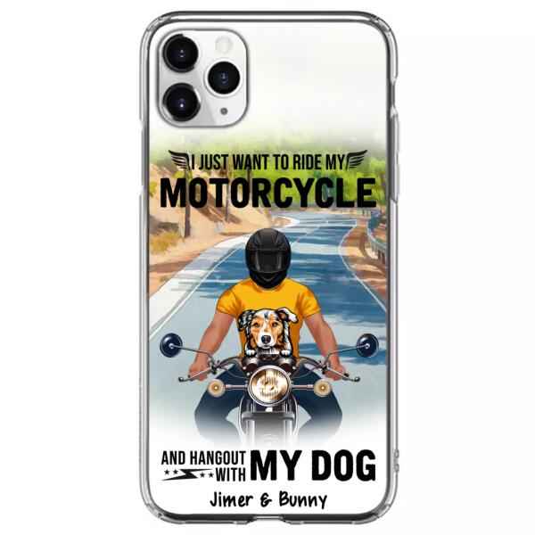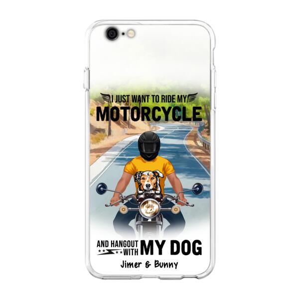 Custom Personalized Dog With Biker Phone Case – Upto 3 Dogs – Gifts For Dog Lover – Hangout With My Dog – Phone Case For Iphone And Samsung