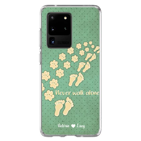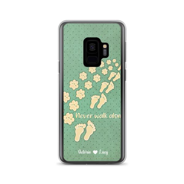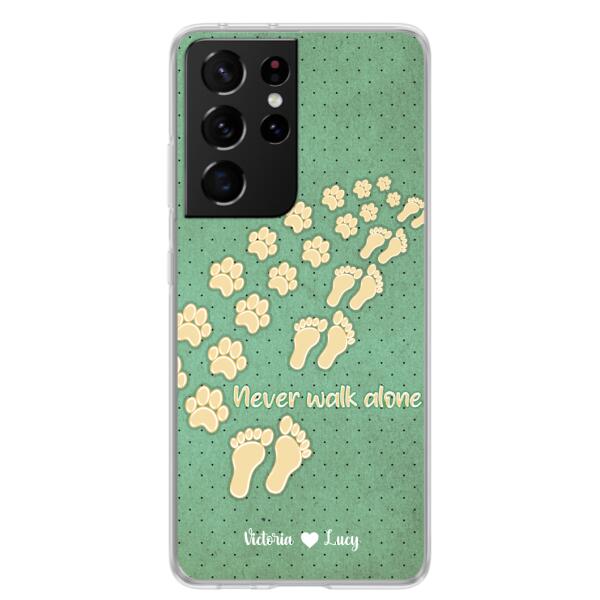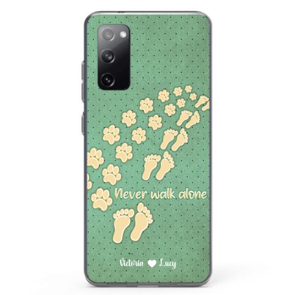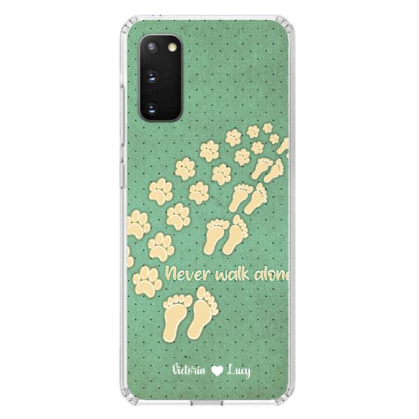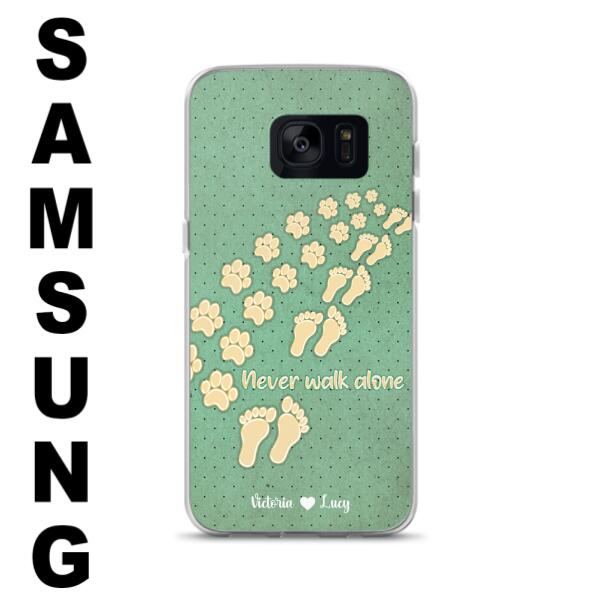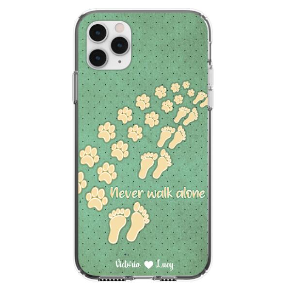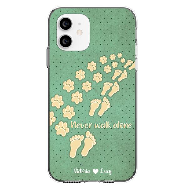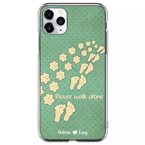 Custom Personalized Dogs’S Paws Phone Case – Best Gift Idea For Dog Lovers With Upto 3 Dogs’S Paws – Never Walk Alone – Case For Iphone, Samsung And Xiaomi