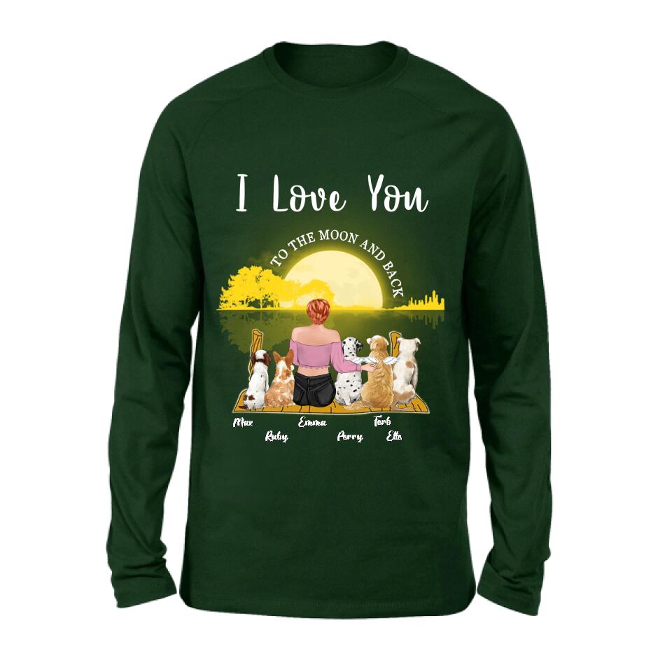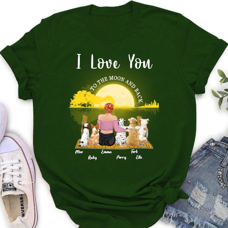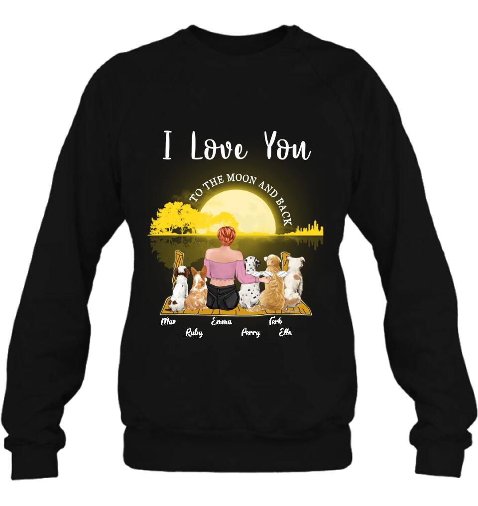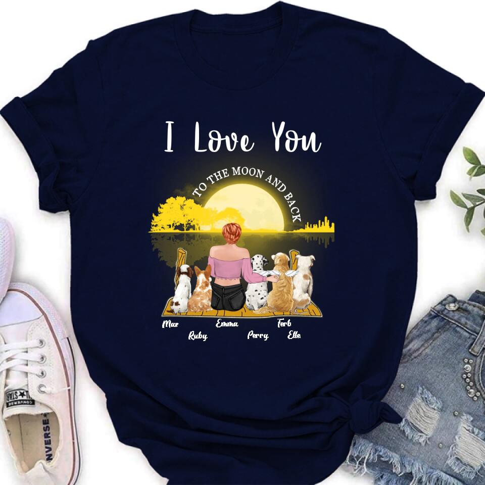 Custom Personalized Girl & Pet Moon Light Shirt – Gift Idea For Pet Lover With Up 5 Pets – I Love You To The Moon And Back