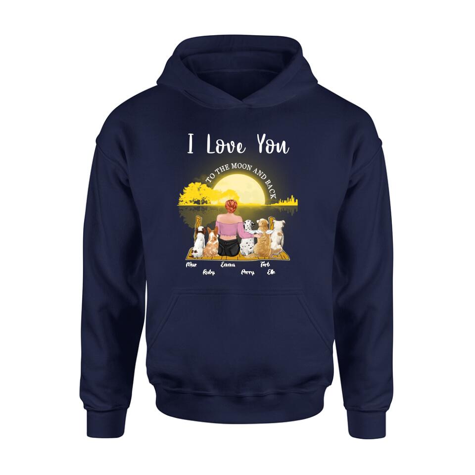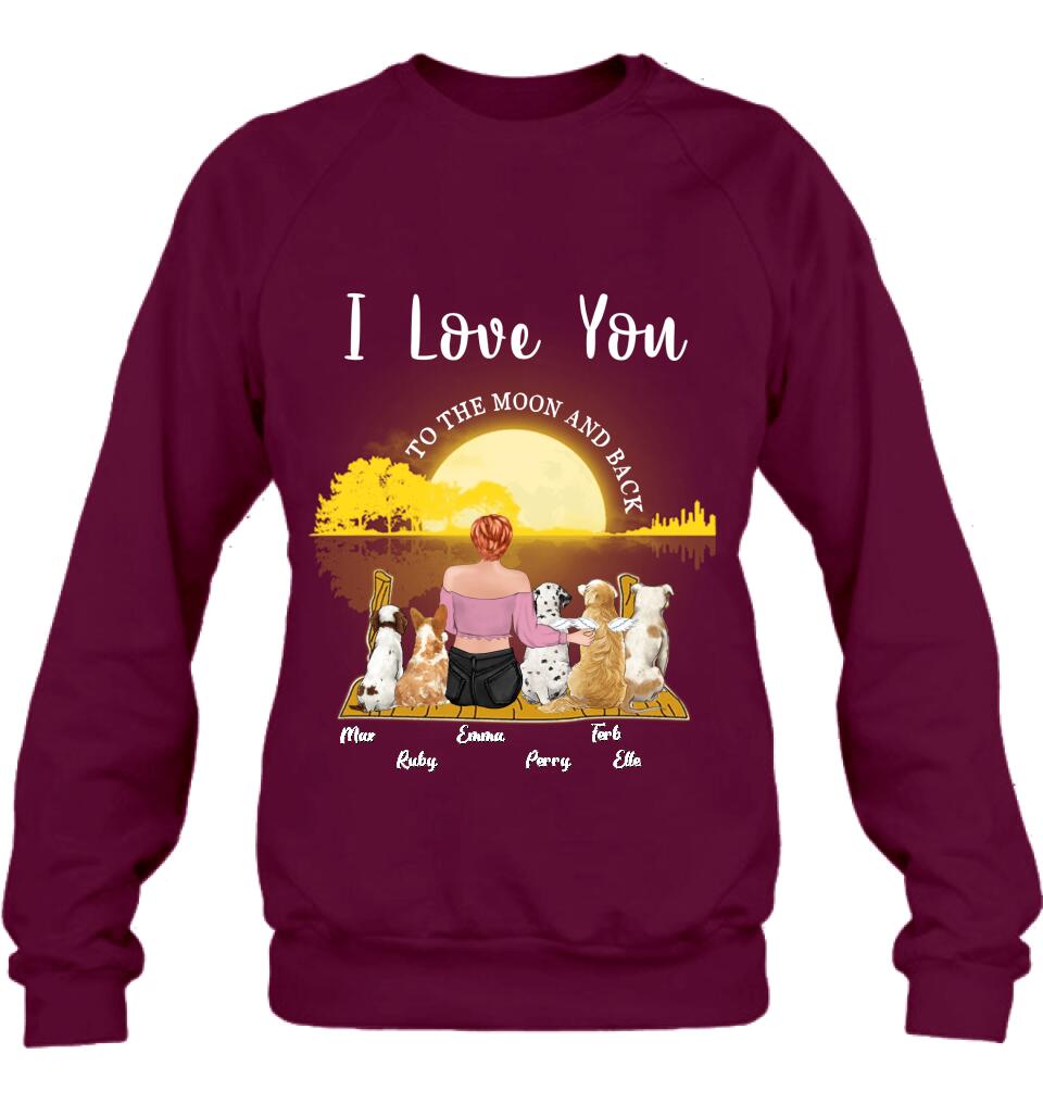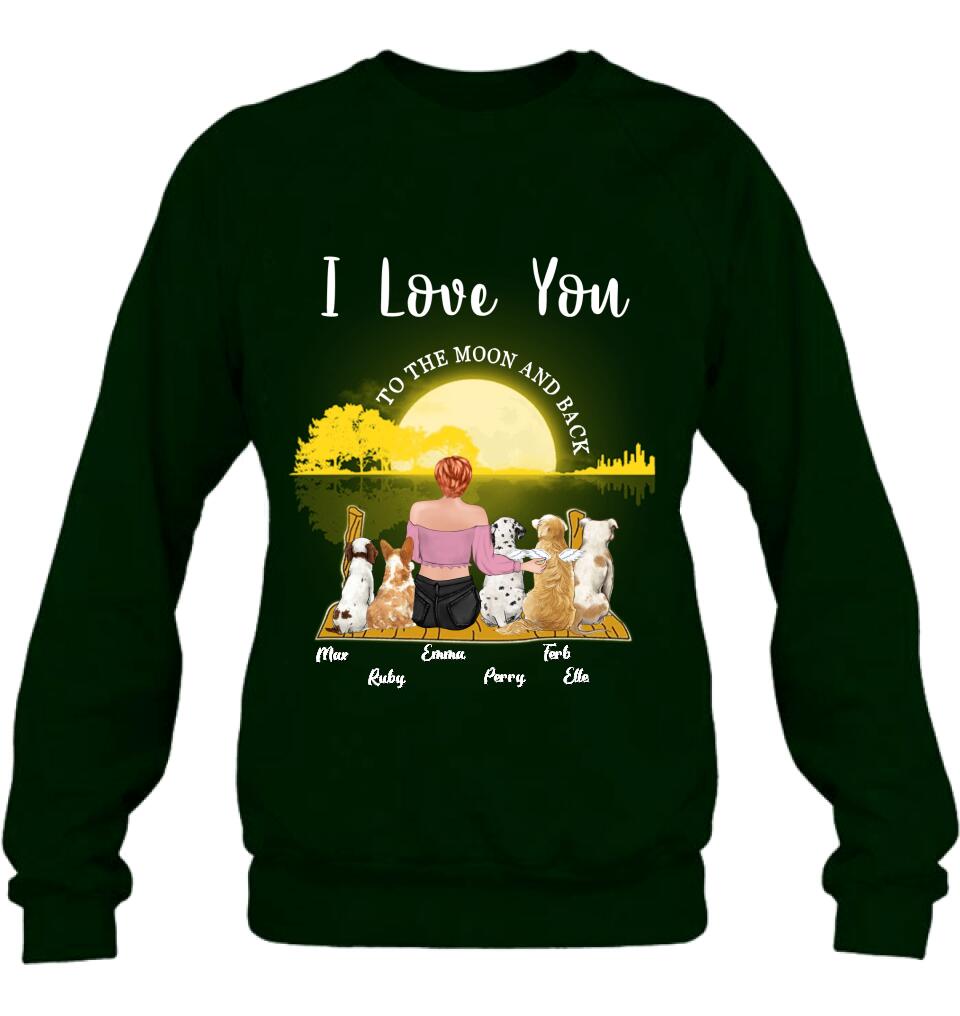Custom Personalized Girl & Pet Moon Light Shirt – Gift Idea For Pet Lover With Up 5 Pets – I Love You To The Moon And Back