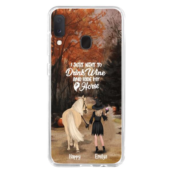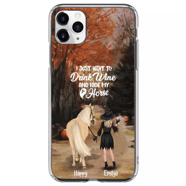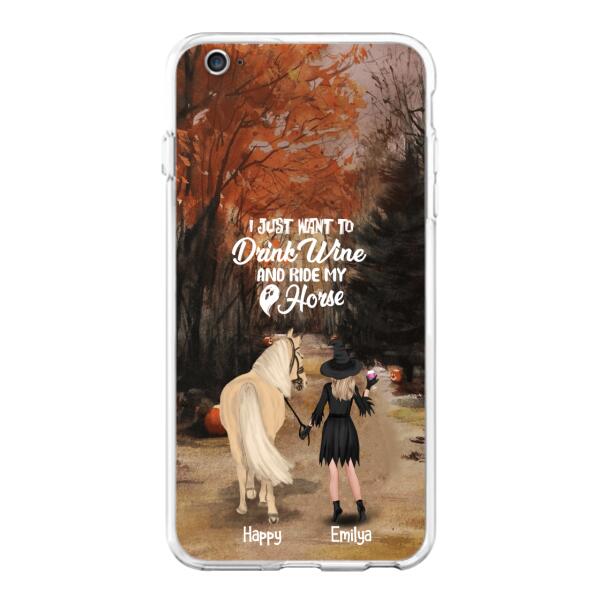 Custom Personalized Horse Witch Phone Case – Halloween Gift For Horse Lover – Drink Wine And Rise My Horse – Case For Iphone And Samsung – Eqriyv