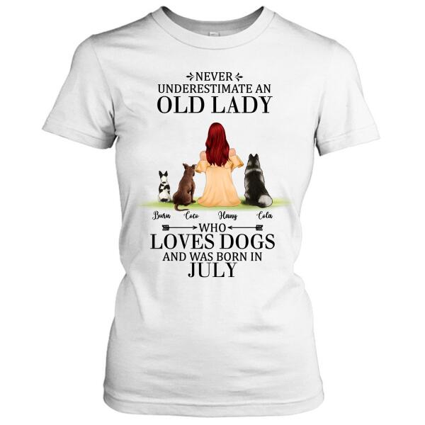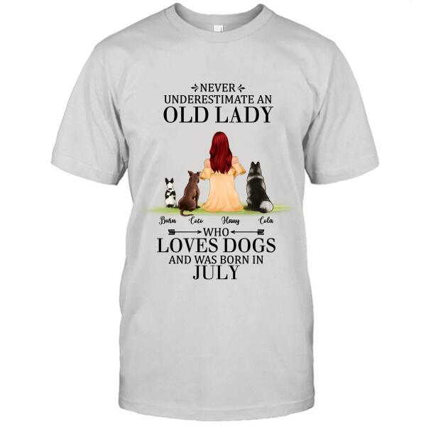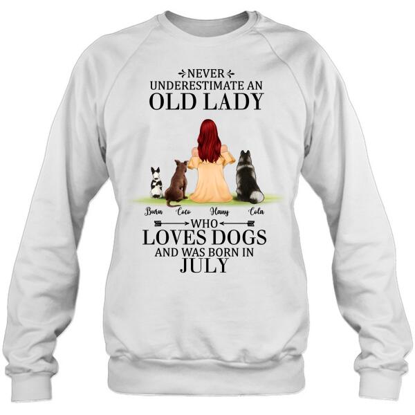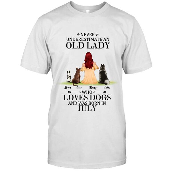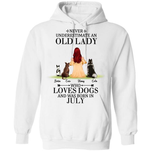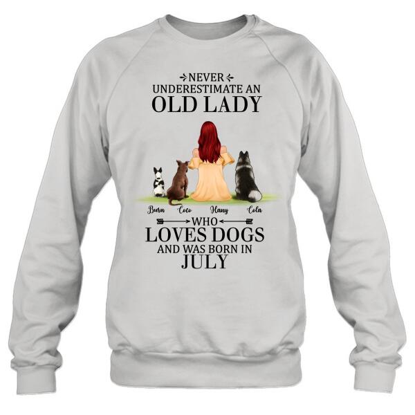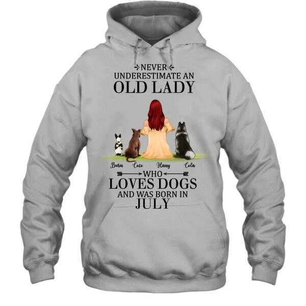 Custom Personalized Old Lady Dog T-Shirt/ Pullover Hoodie – Upto 5 Dogs- Best Gift For Dog Lover/ Never Underestimate An Old Lady Who Loves Dogs