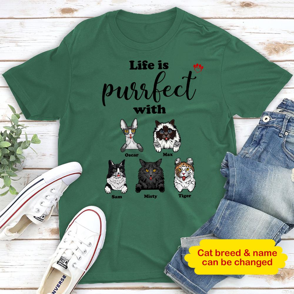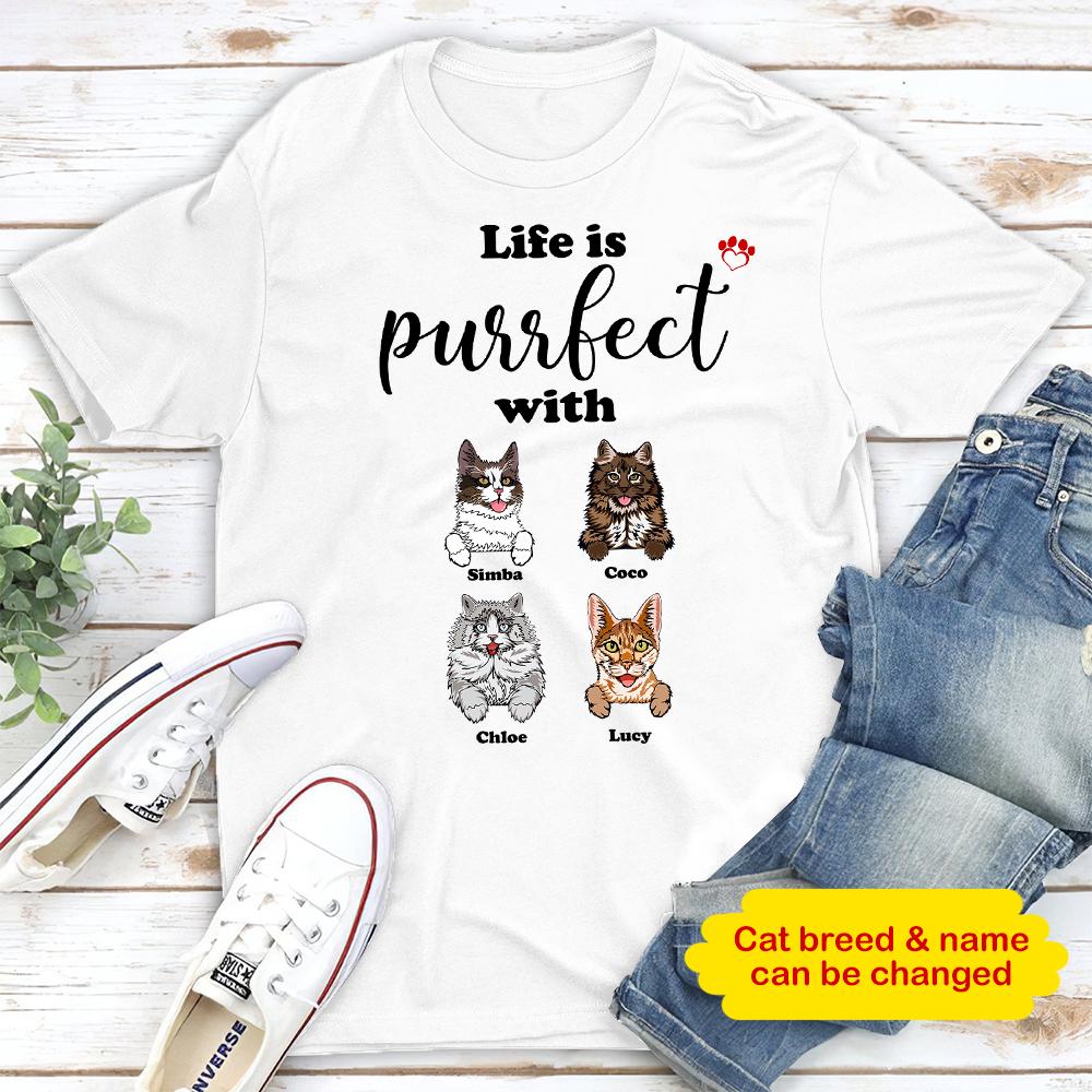 Custom Personalized Preview Tshirt – Life Is Purrfect With Cats – Personalizedwitch