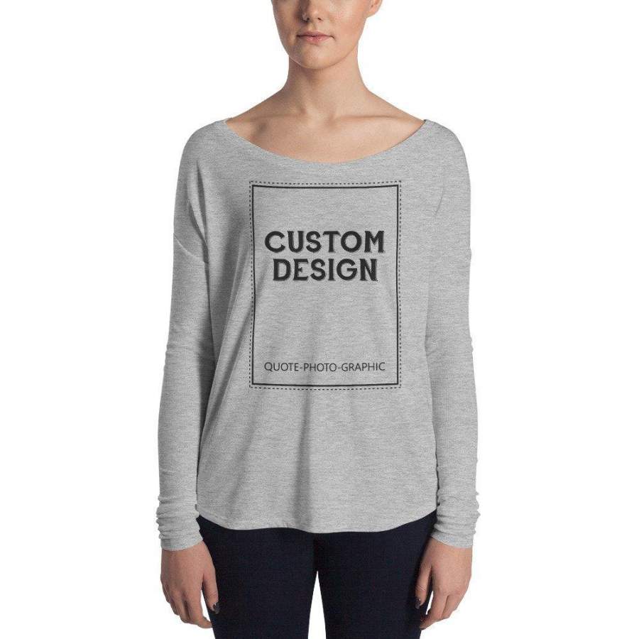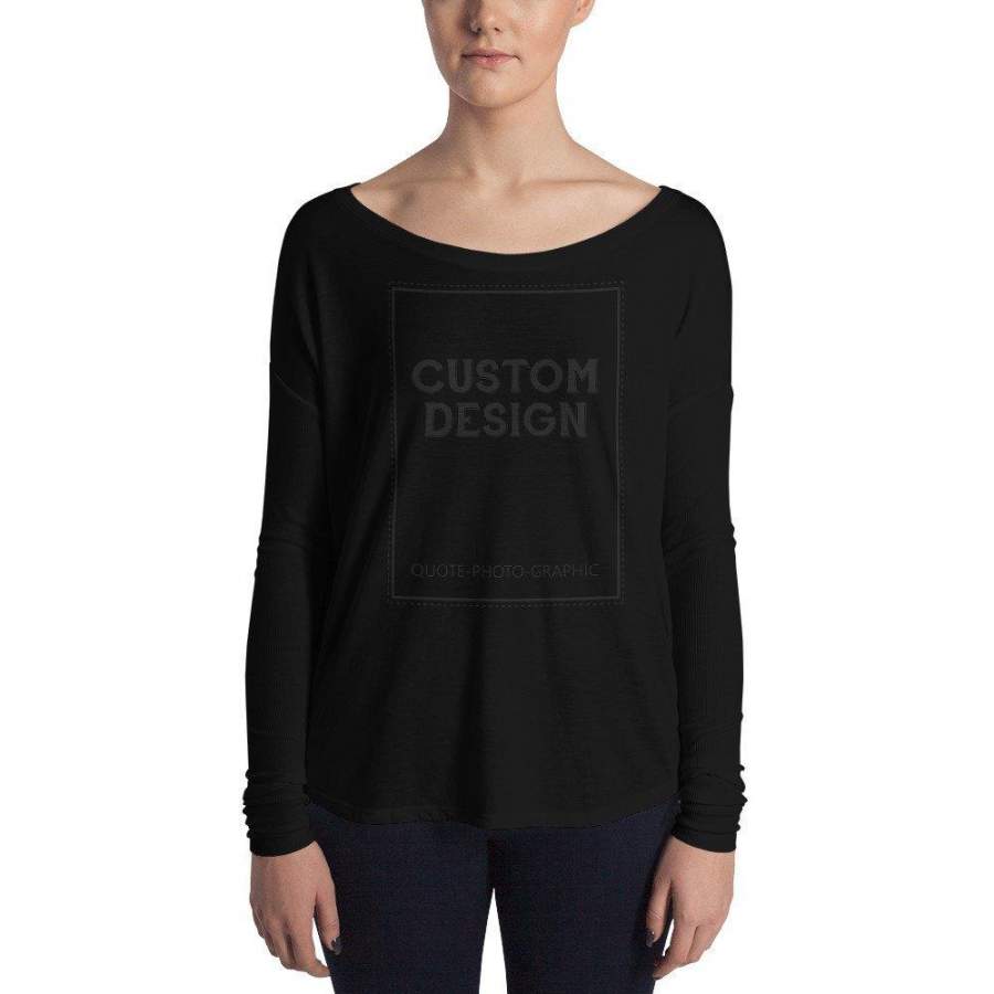 CUSTOM TEXT Personalized Women’s Comfortable Flowy Long Sleeve Tee with 2×1 Sleeves – Custom Design T-shirt with saying, Photo Dog cat
