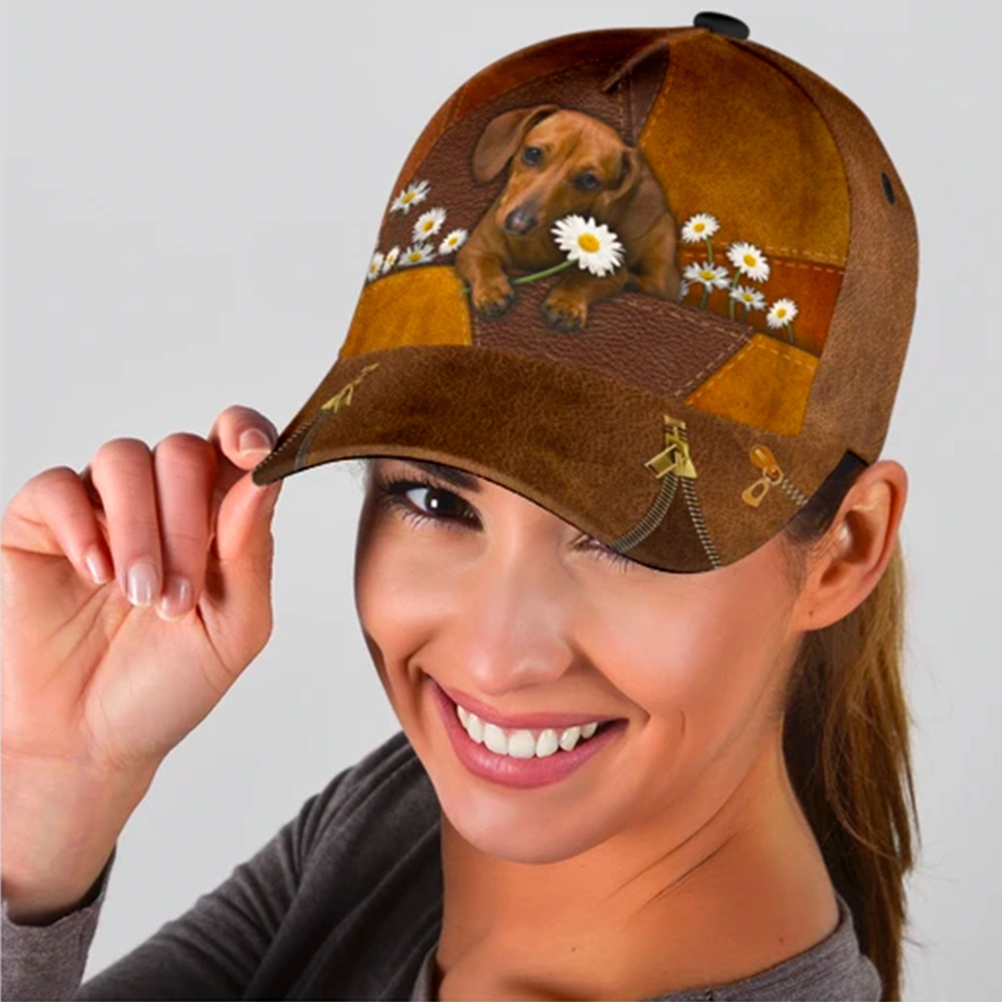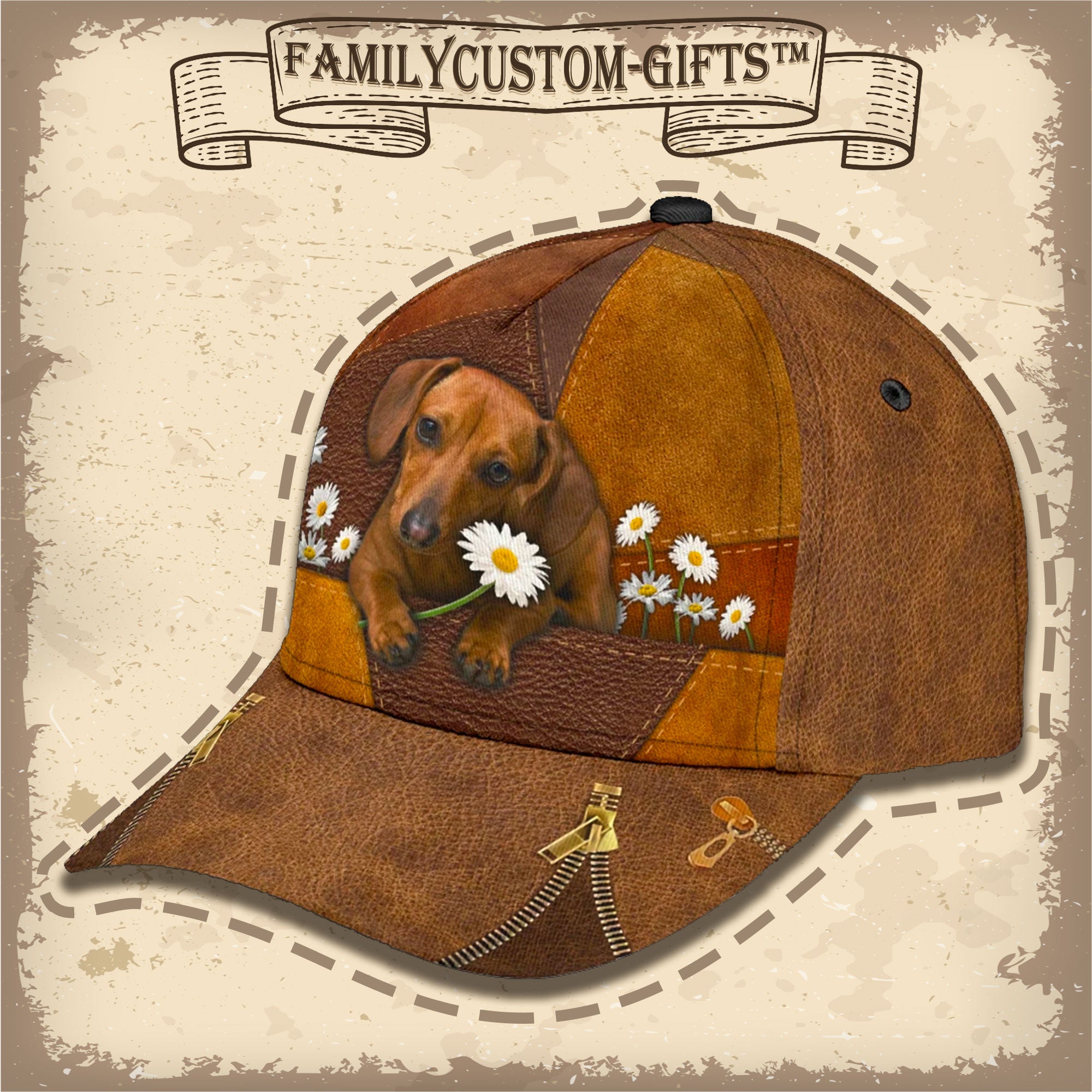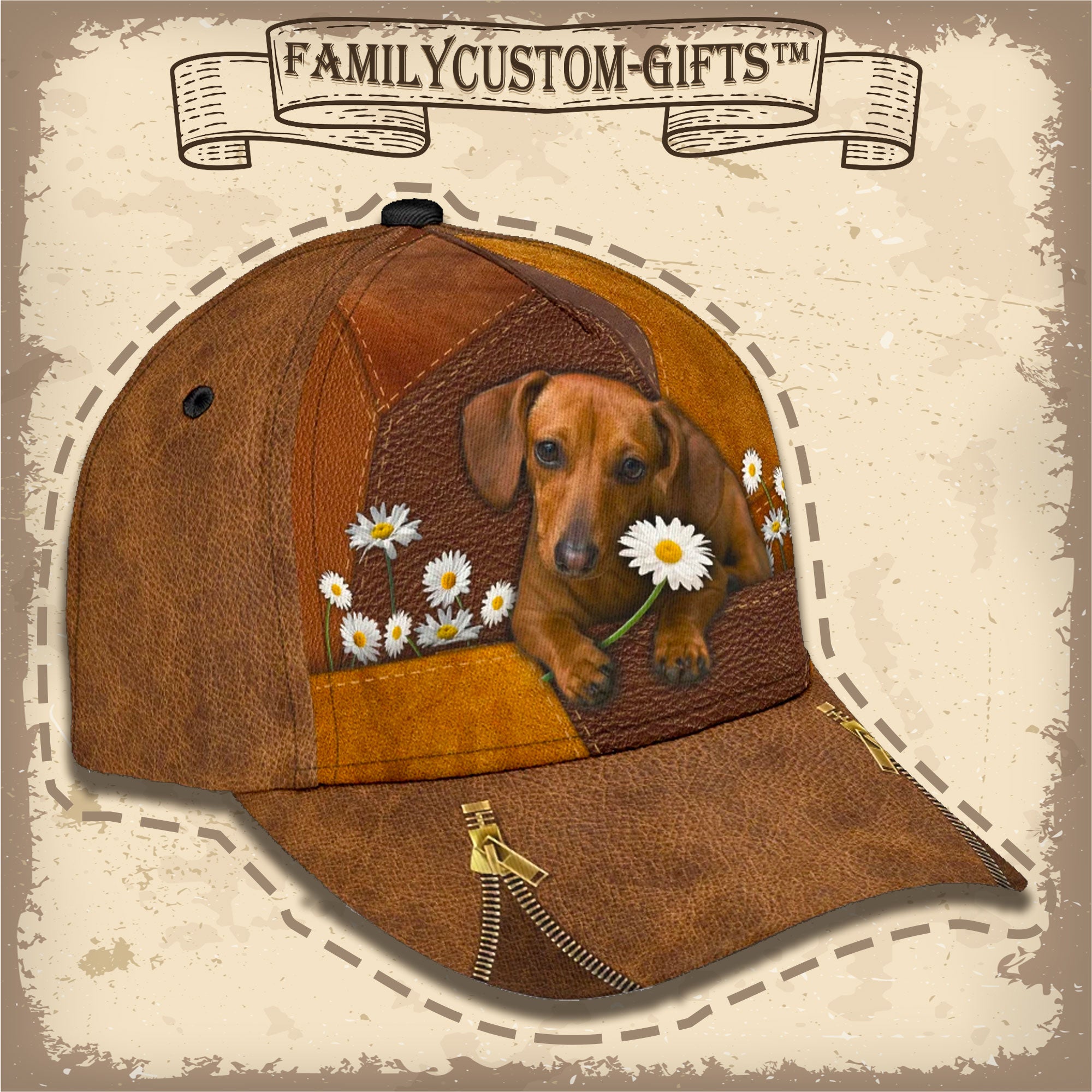 Dachshunds Dog Flower Custom Hats For Men & Women 3D Prints Personalized Baseball Caps