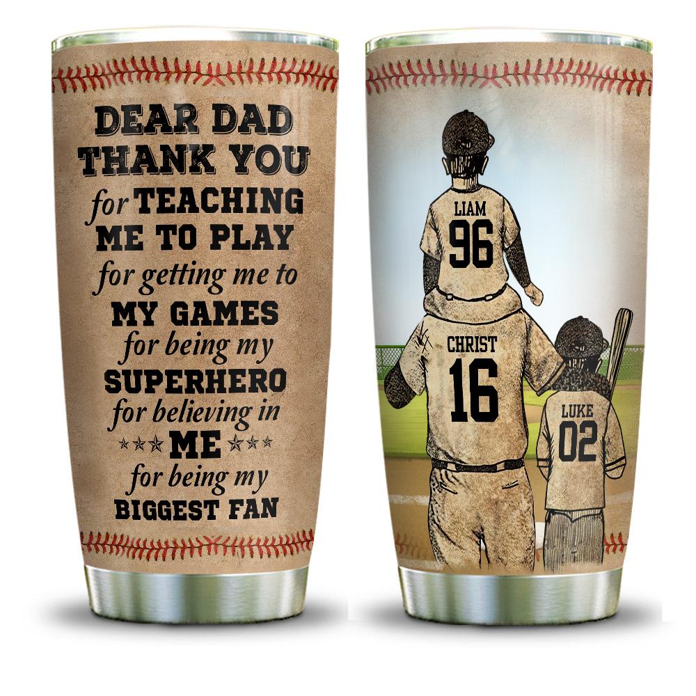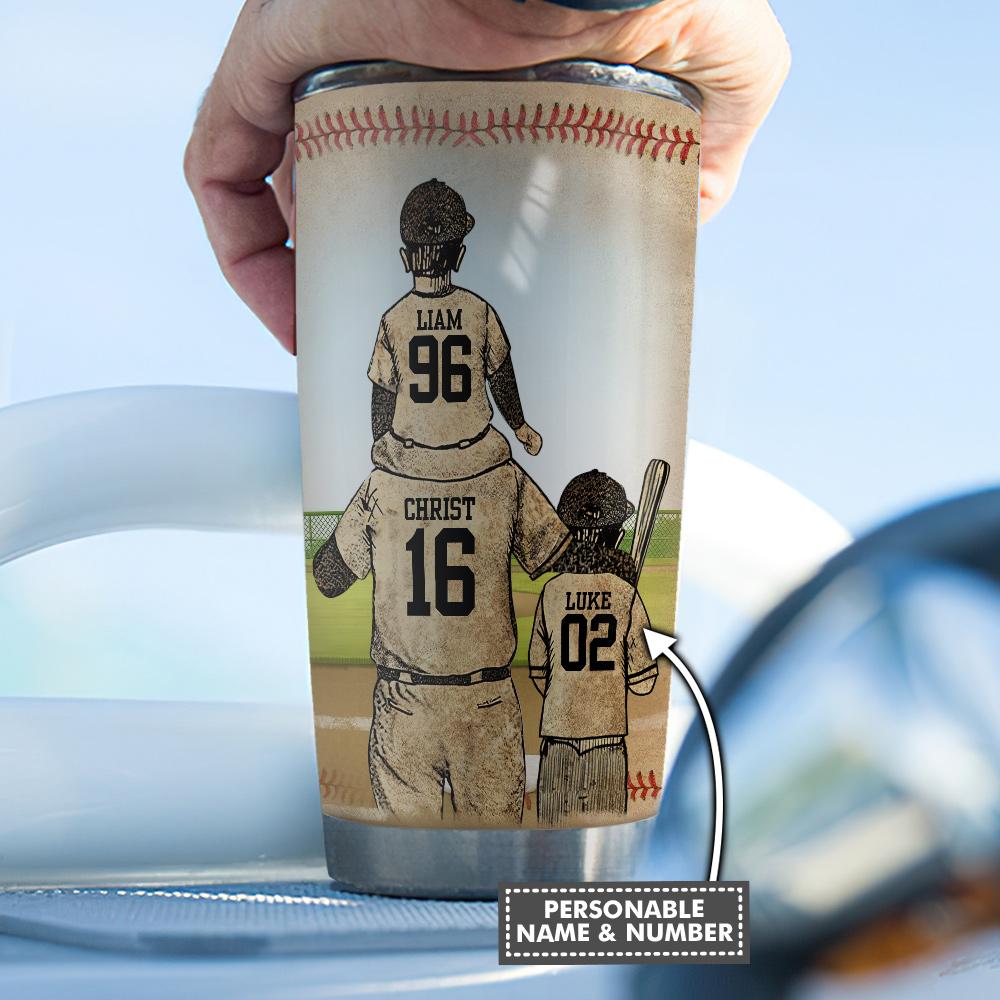 Dad With Sons In Baseball Personalized Stainless Steel Tumbler