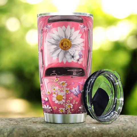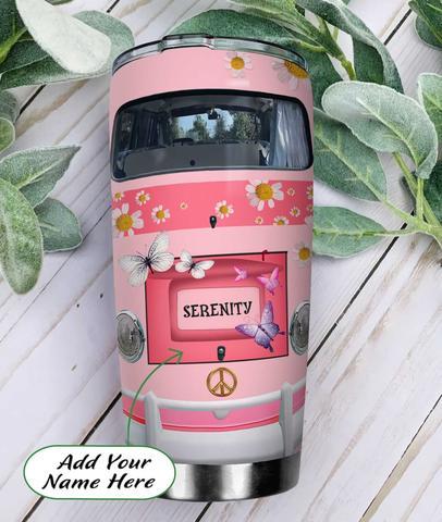Daisy Pink Hippie Van Personalized Kd2 Stainless Steel Tumbler, Personalized Tumblers, Tumbler Cups, Custom Tumblers