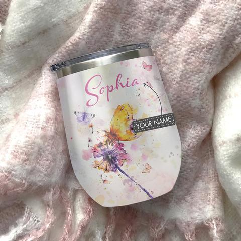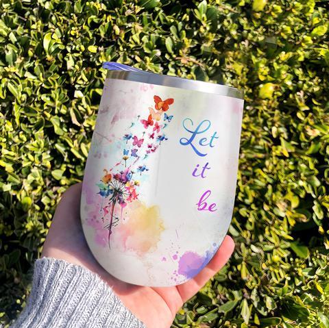 Dandelion Butterfly Let It Be Hippie Gift Personalized Wine Tumbler, Personalized Tumblers, Tumbler Cups, Custom Tumblers
