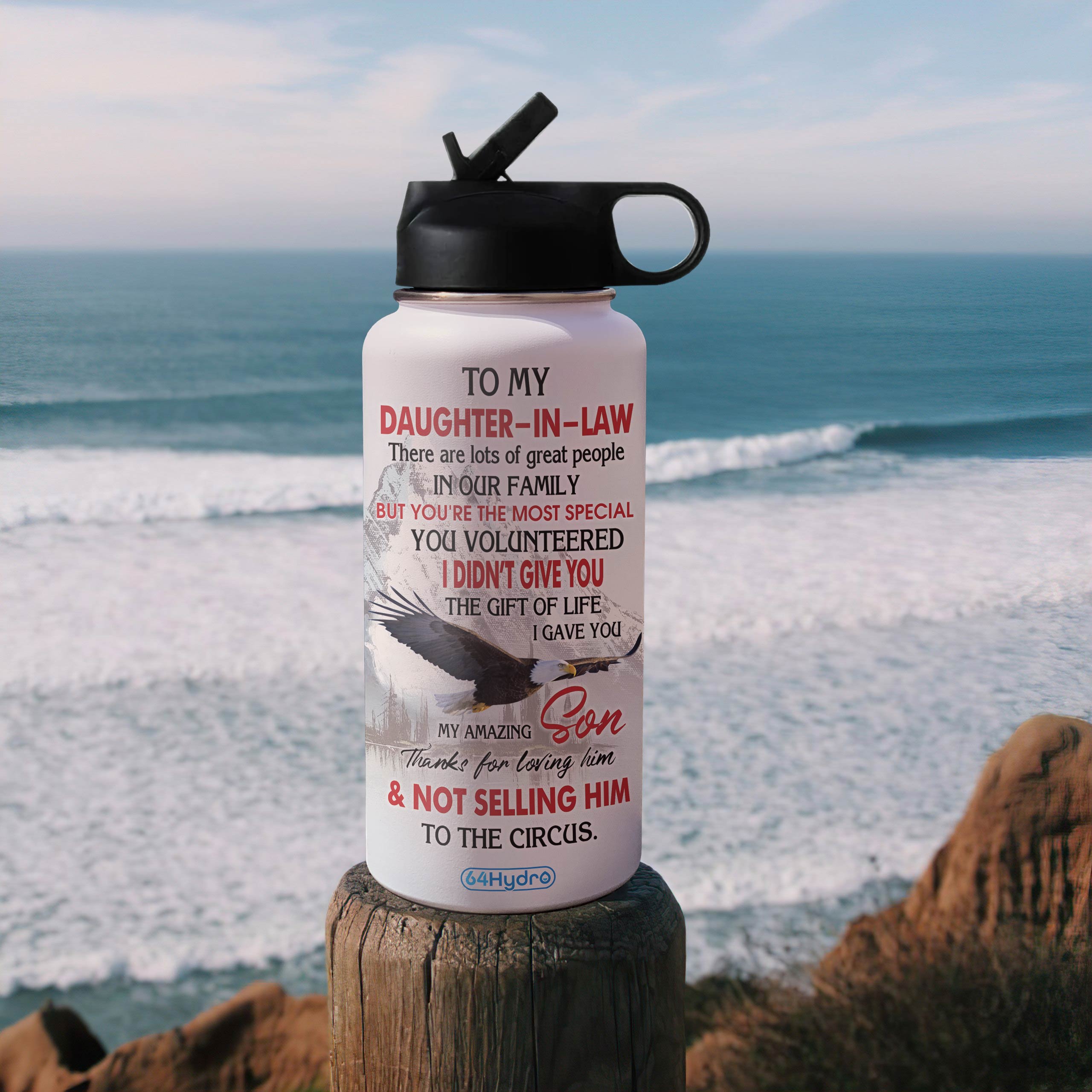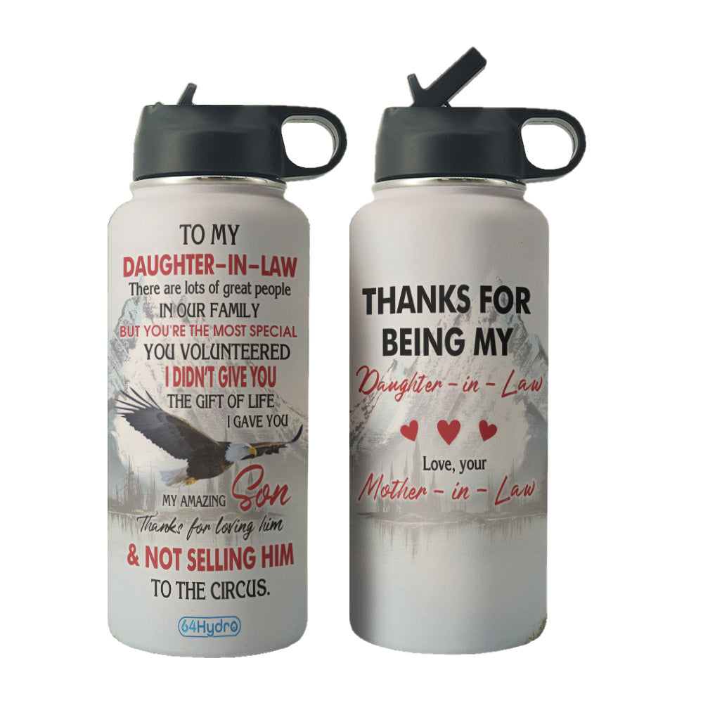 Daughter In Law Eagle Personalized Hha3010002 Stainless Steel Bottle With Straw Lid