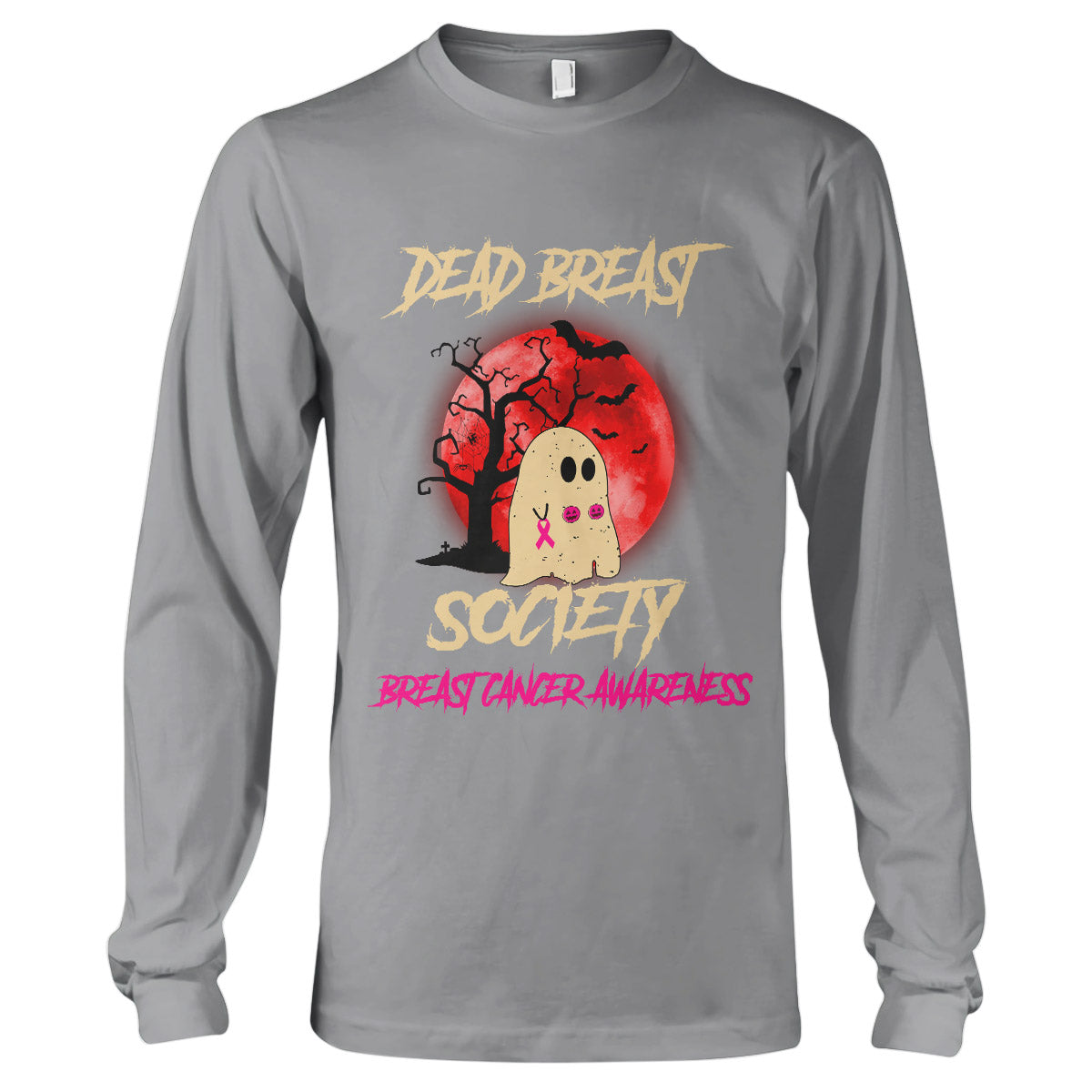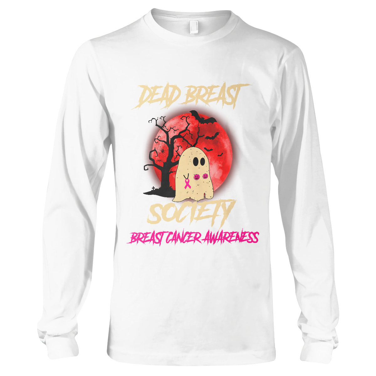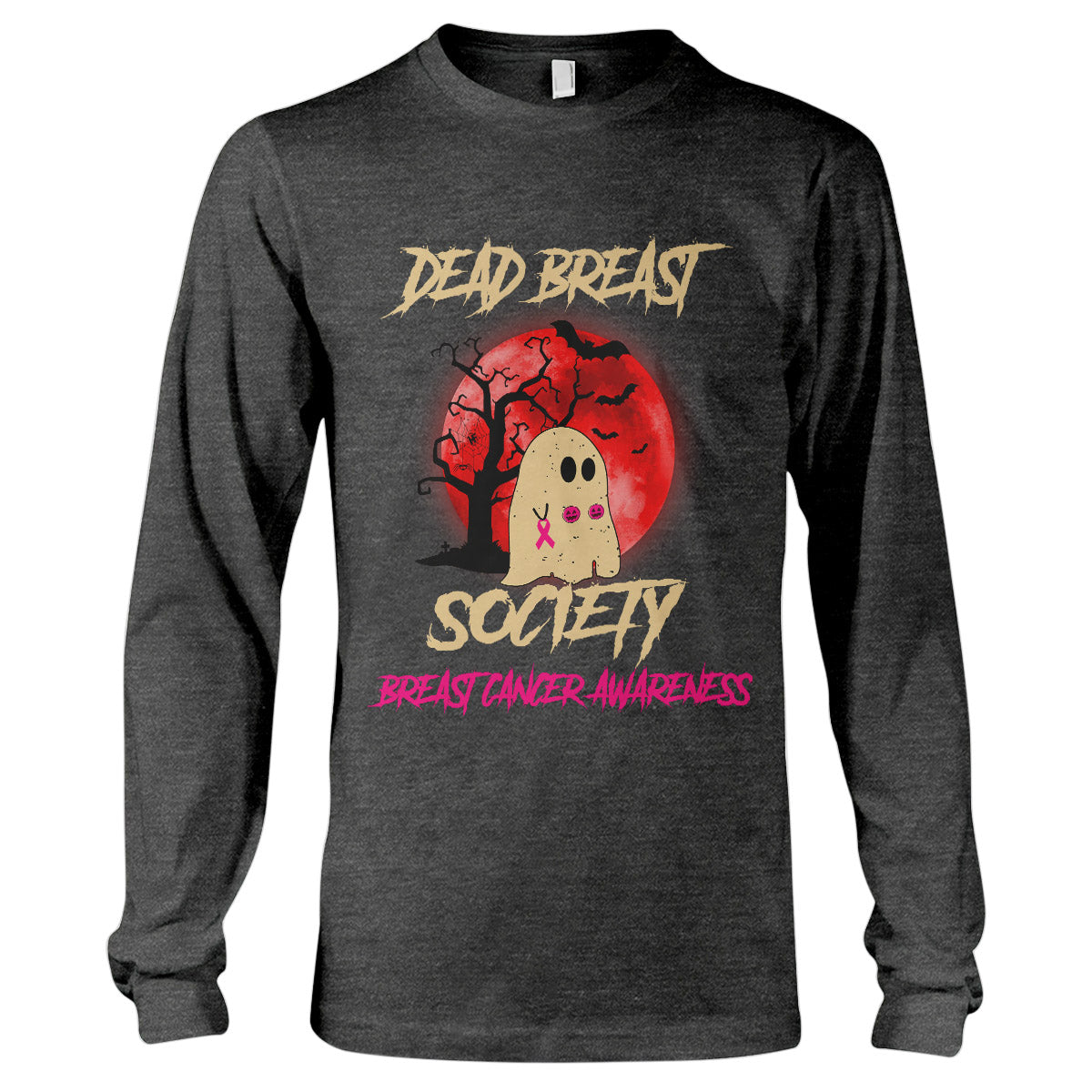 Dead Breast Society Breast Cancer Awareness Shirt, Halloween Breast Cancer Support Gift Long Sleeve T-Shirt