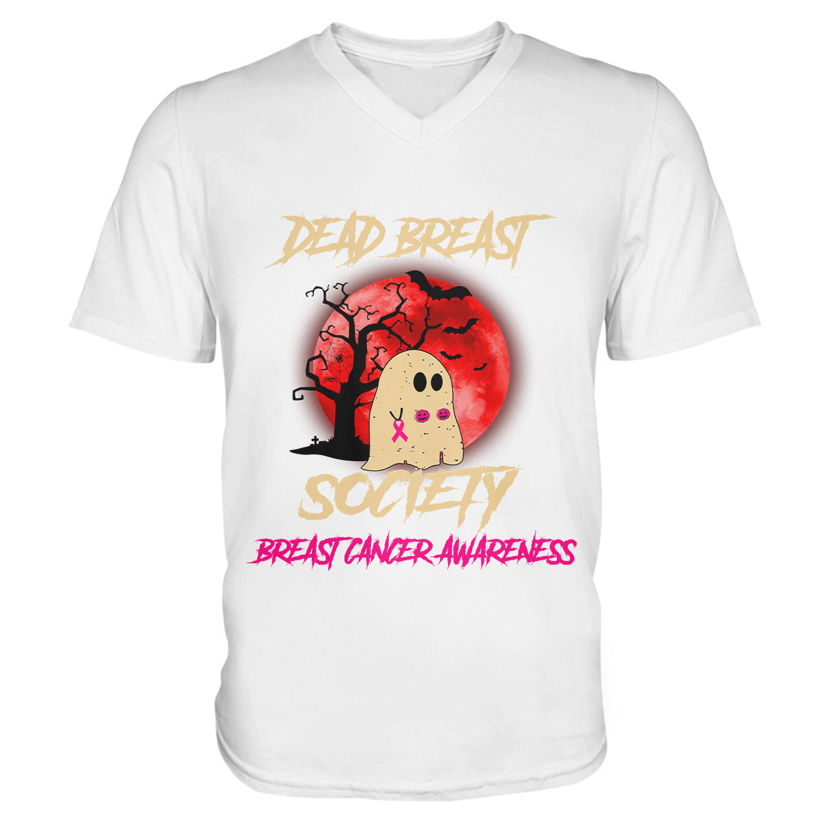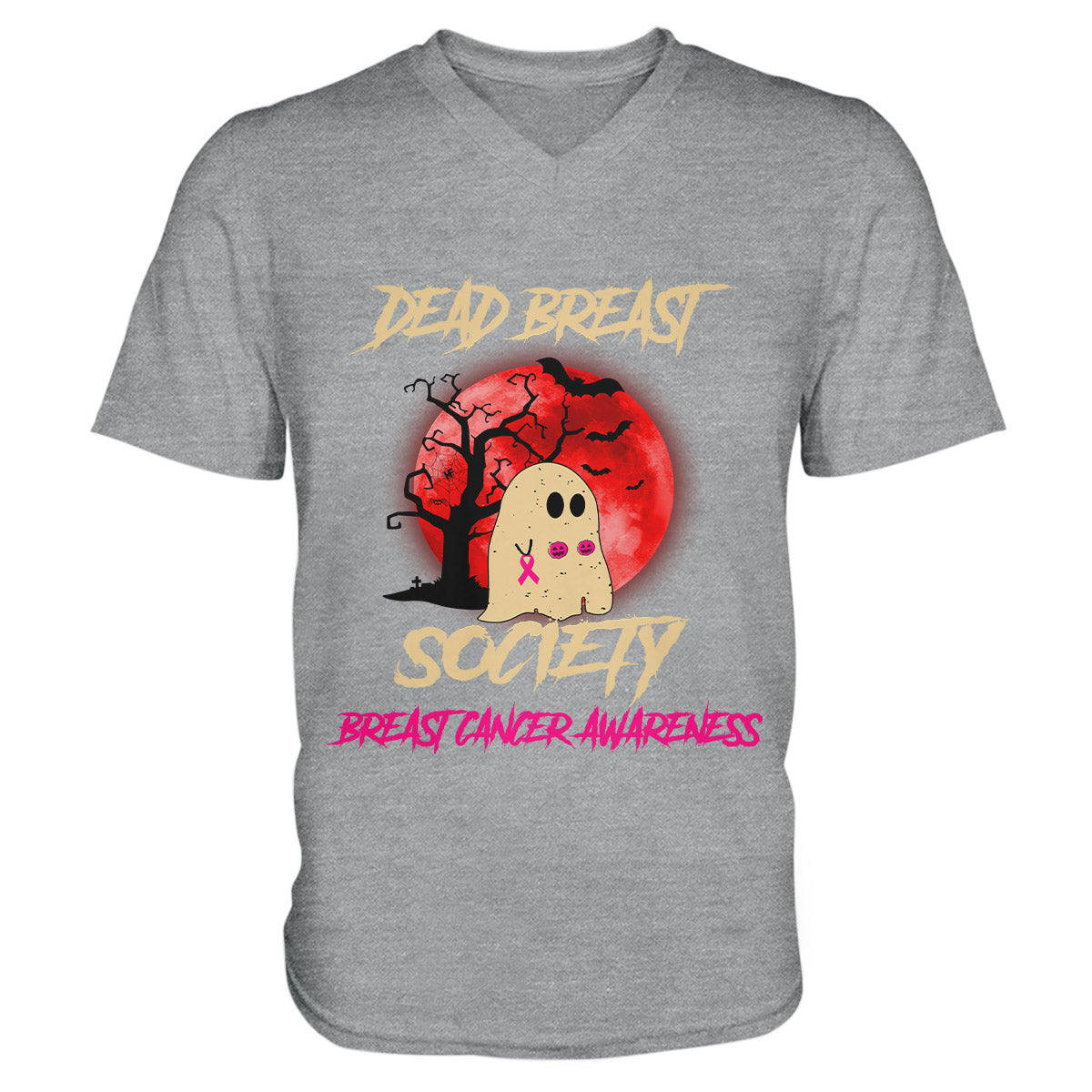 Dead Breast Society Breast Cancer Awareness Shirt, Halloween Breast Cancer Support Gift Unisex V-Neck T-Shirt