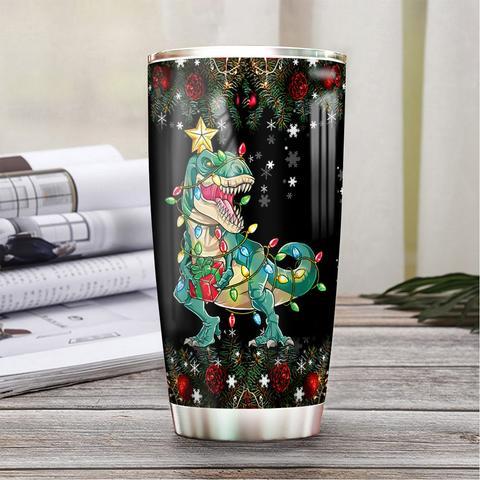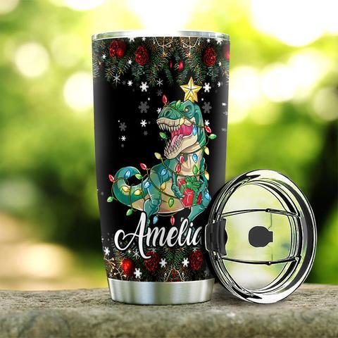 Dinosaur Christmas Personalized Stainless Steel Tumbler, Personalized Tumblers, Tumbler Cups, Custom Tumblers