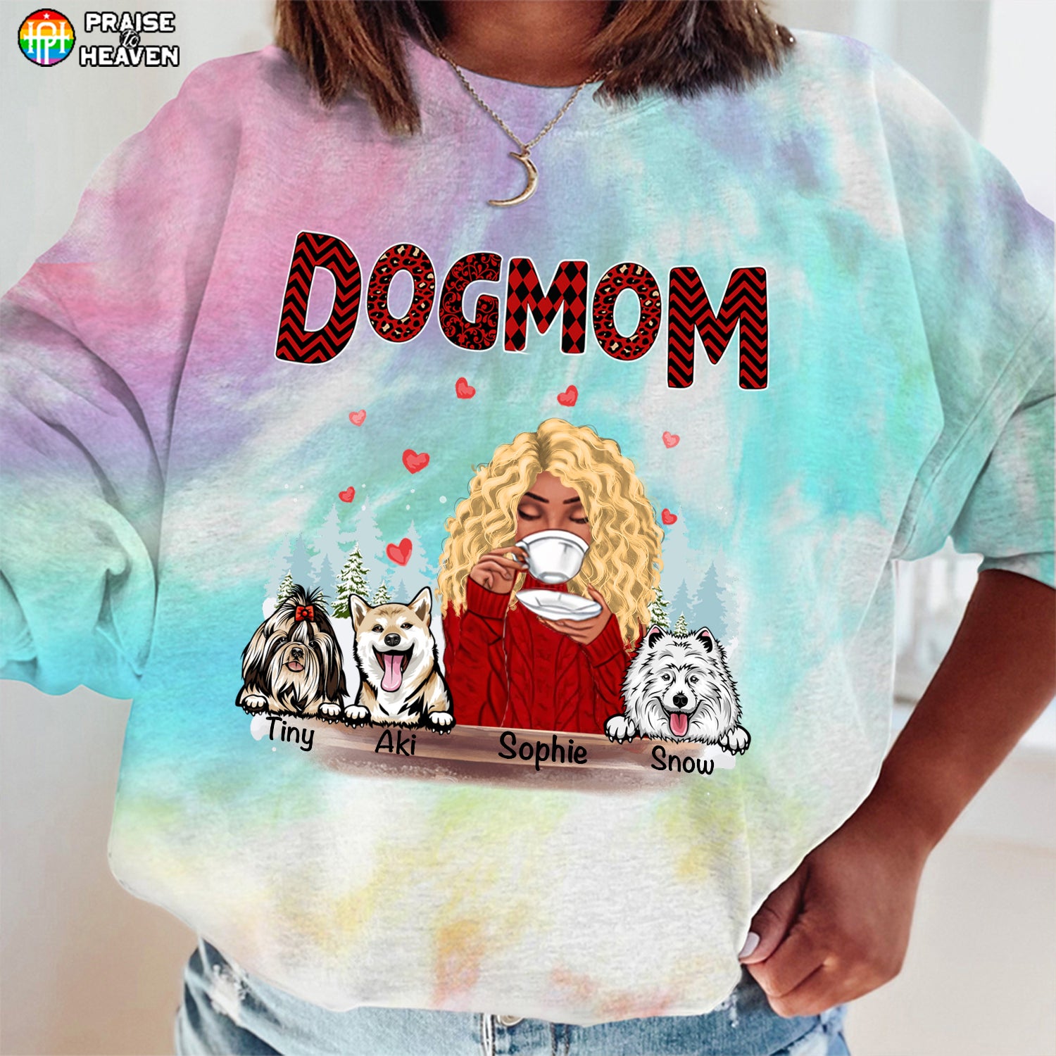 Dog Mom Red Patterned Personalized Tie Dye Shirt Sweatshirt Hoodie Ap414