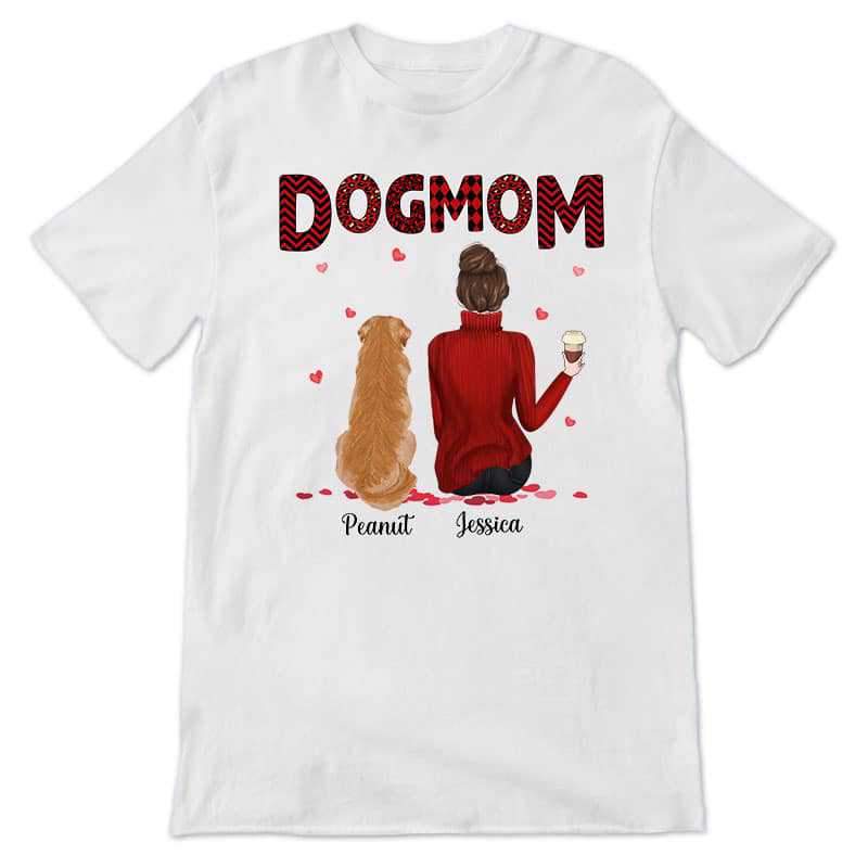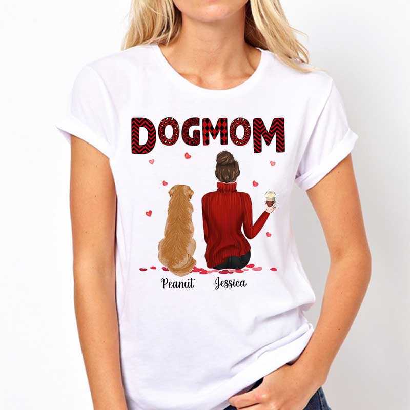 Dog Mom Sitting Girl Red Patterned Personalized Shirt