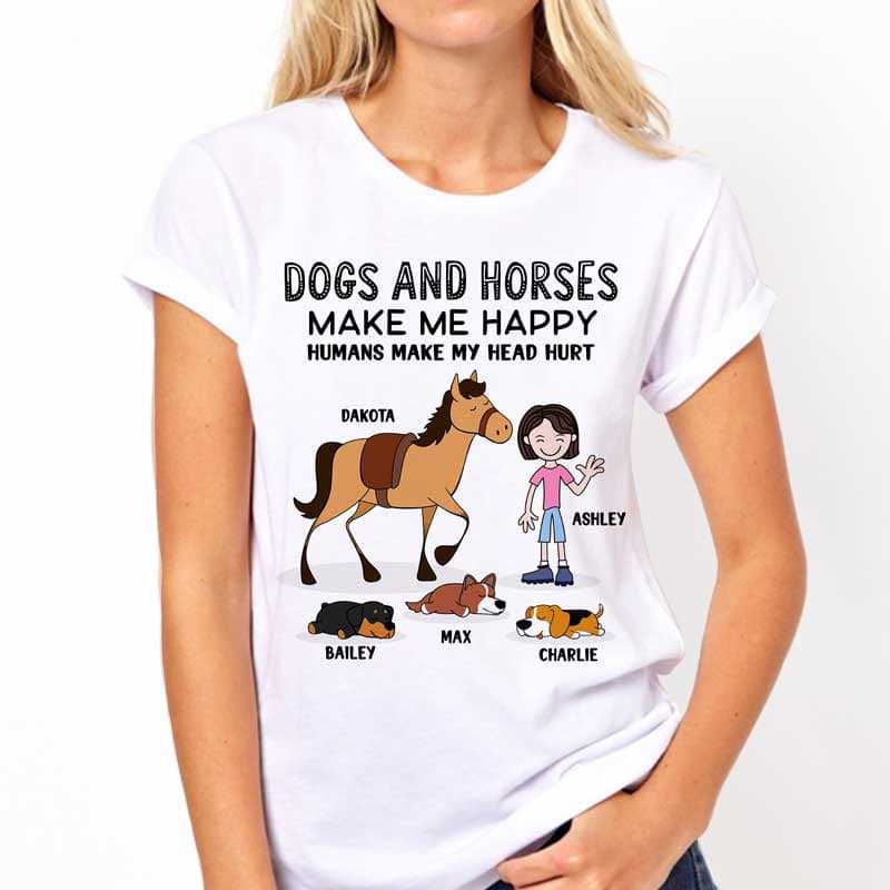 Dogs And Horses Make Me Stick Happy Personalized Shirt