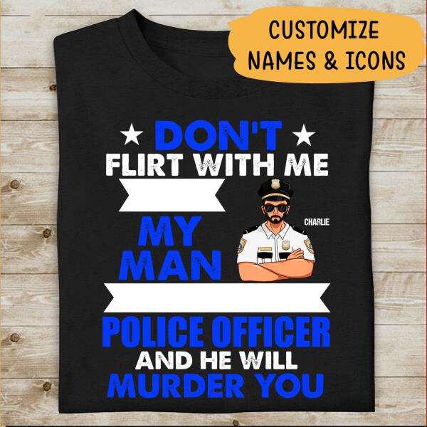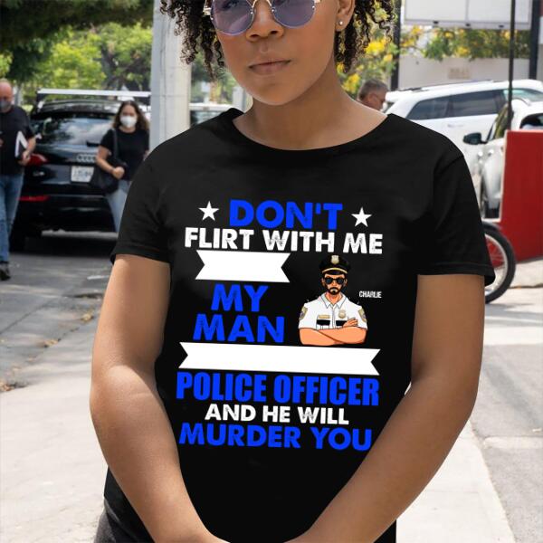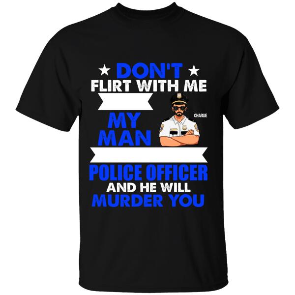 Don’T Flirt With Me My Man Police Officer And He Will Murder You Personalized T-Shirt, Best Gift For Police’S Wife