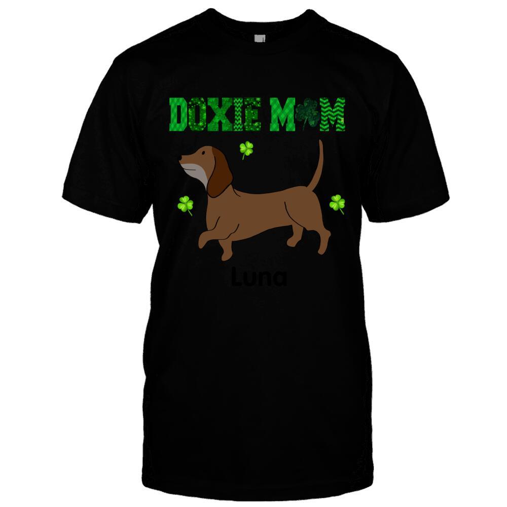 Doxie Mom Dachshund St Patrick Day Irish Shamrock Dog Lover Custom Dog & Name Personalized T-shirt Hoodie