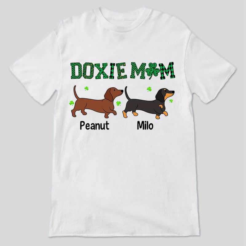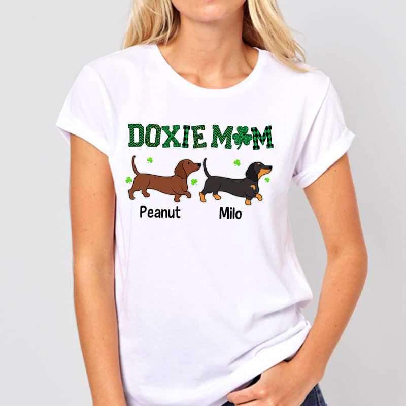 Doxie Mom Green Plaid Shamrock Personalized Shirt