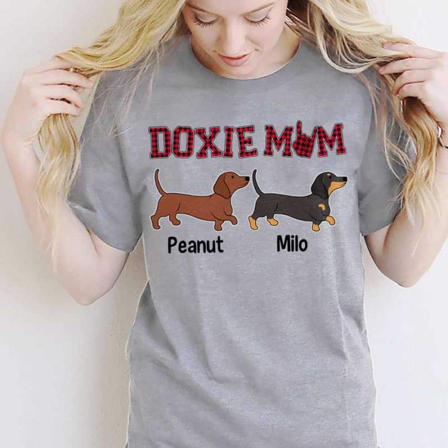Doxie Mom Red Plaid Dachshund Dog Personalized Shirt