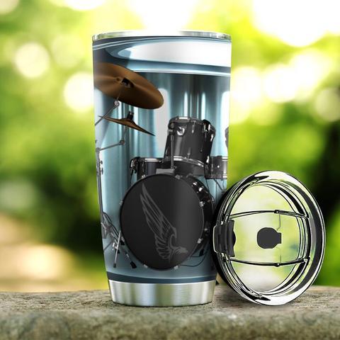Drum Set Black Stainless Steel Tumbler, Personalized Tumblers, Tumbler Cups, Custom Tumblers