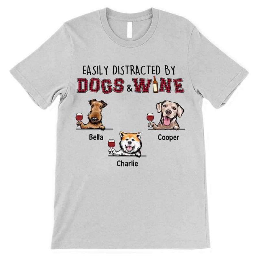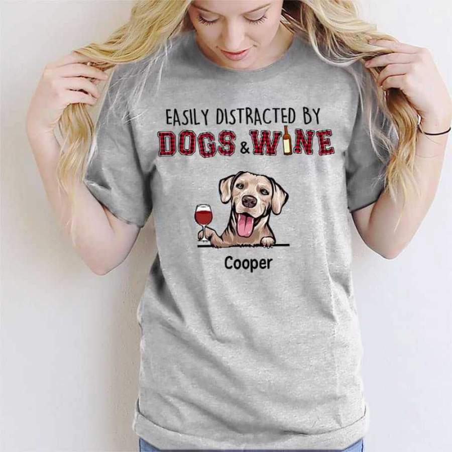 Easily Distracted By Peeking Dog And Wine Personalized Shirt