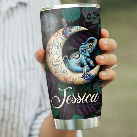 Elephant And Crescent Moon Personalized Stainless Steel Tumbler, Personalized Tumblers, Tumbler Cups, Custom Tumblers