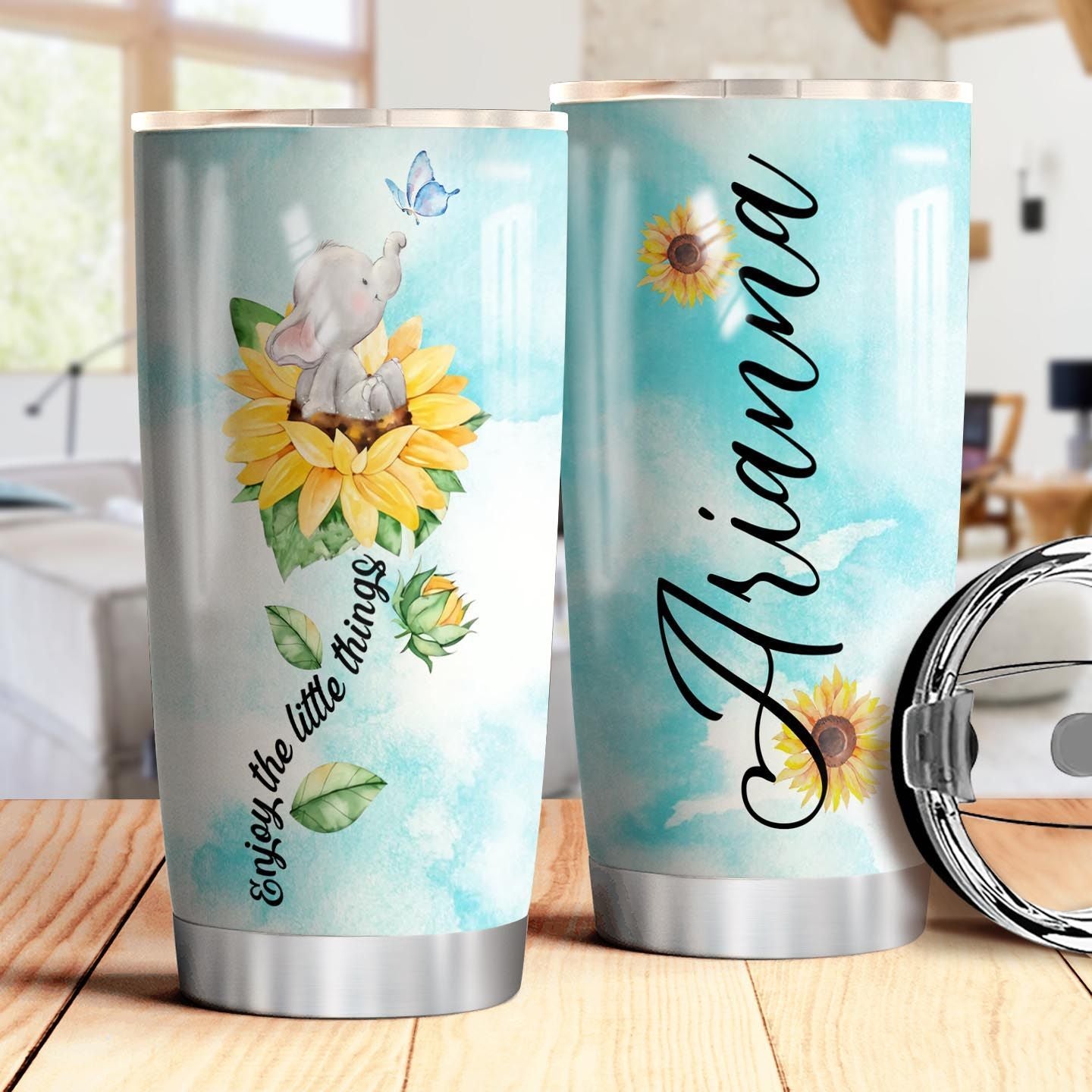 Elephant Butterfly Personalized Thv0710003 Stainless Steel Tumbler
