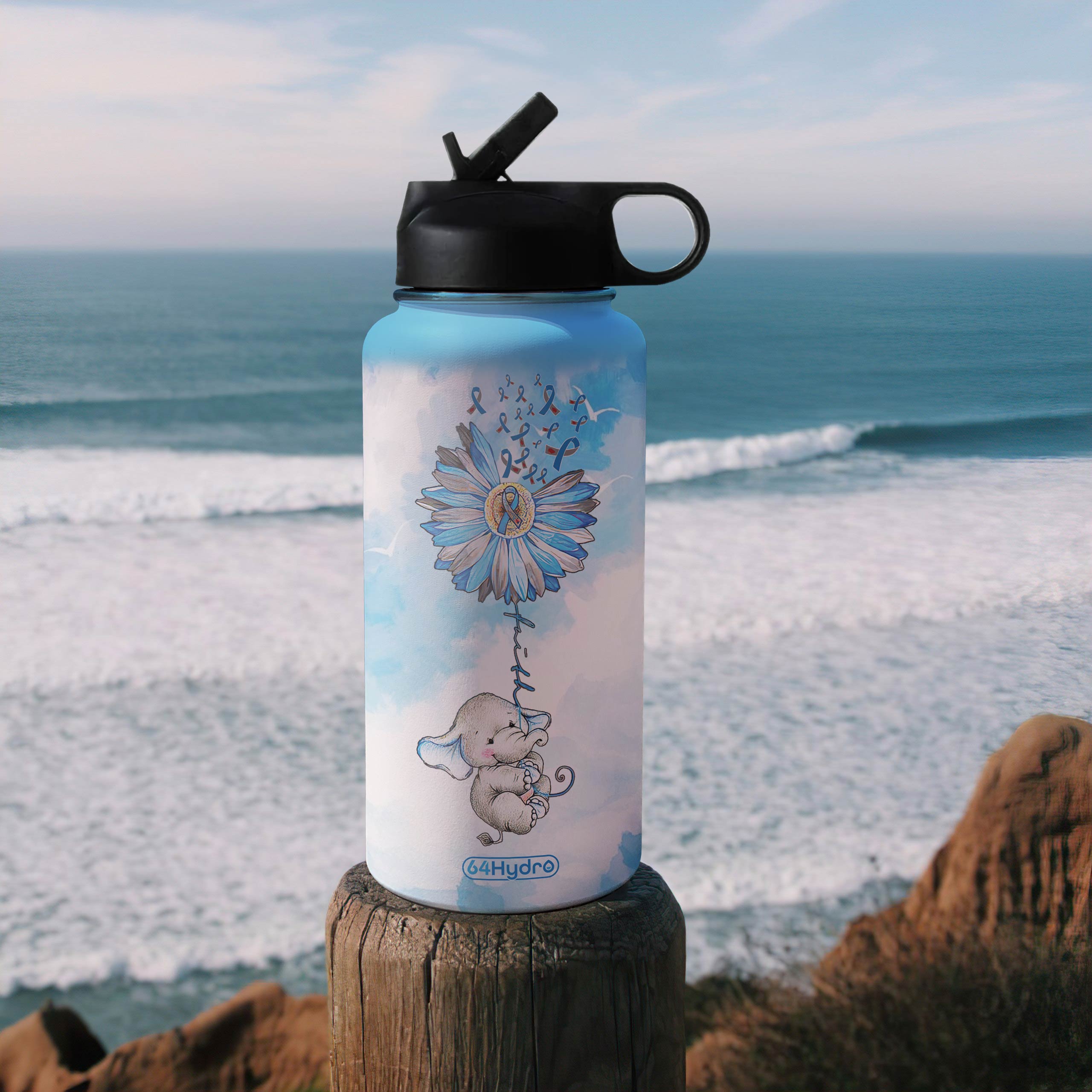 Elephant Diabetes Personalized Mda2809011 Stainless Steel Bottle With Straw Lid