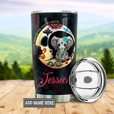 Elephant Sugar Skull Personalized Stainless Steel Tumbler, Personalized Tumblers, Tumbler Cups, Custom Tumblers