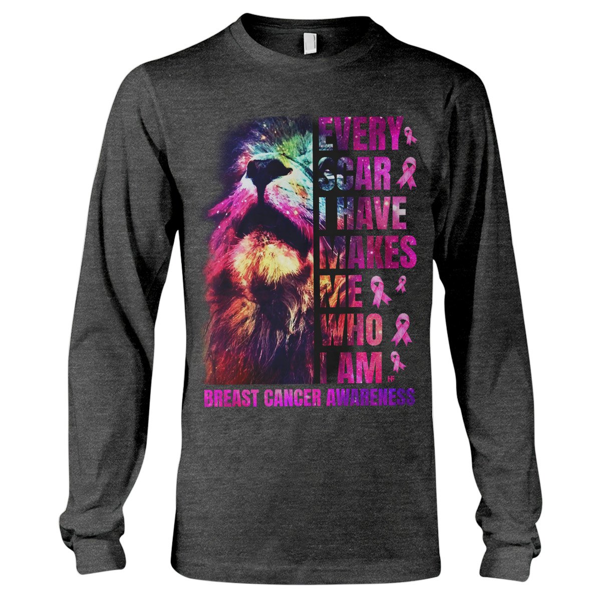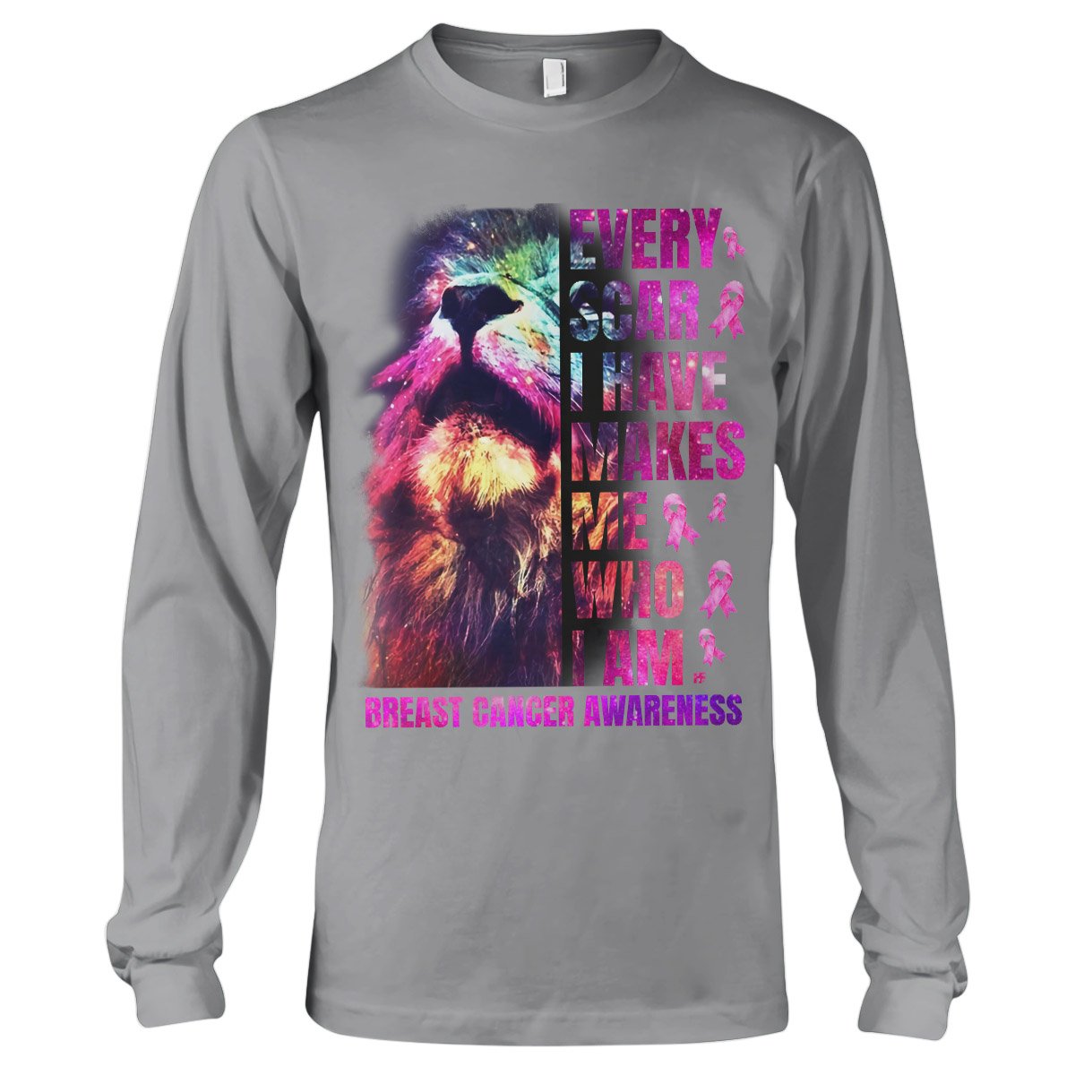 Every Scar I Have Makes Me Who I Am Breast Cancer Awareness Shirt, Rainbow Lion Breast Cancer Long Sleeve T-Shirt