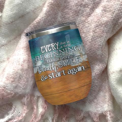 Everyday Is A New Beginning Take A Deep Breath And Start Again Baby Turtle Wine Tumbler Turtle Lovers Gift Wine Tumbler, Personalized Tumblers, Tumbler Cups, Custom Tumblers