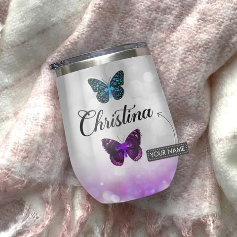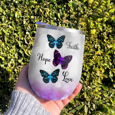 Faith Hope Love Butterfly Faith Personalized Wine Tumbler, Personalized Tumblers, Tumbler Cups, Custom Tumblers