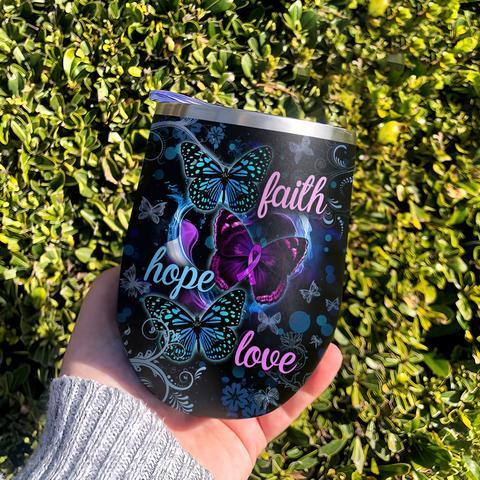 Faith Hope Love Fibromyalgia Awareness Purple Ribbon Butterfly Wine Tumbler Personalized Wine Tumbler, Personalized Tumblers, Tumbler Cups, Custom Tumblers