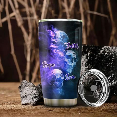 Faith Hope Love Skull Personalized Kd2 Stainless Steel Tumbler, Personalized Tumblers, Tumbler Cups, Custom Tumblers