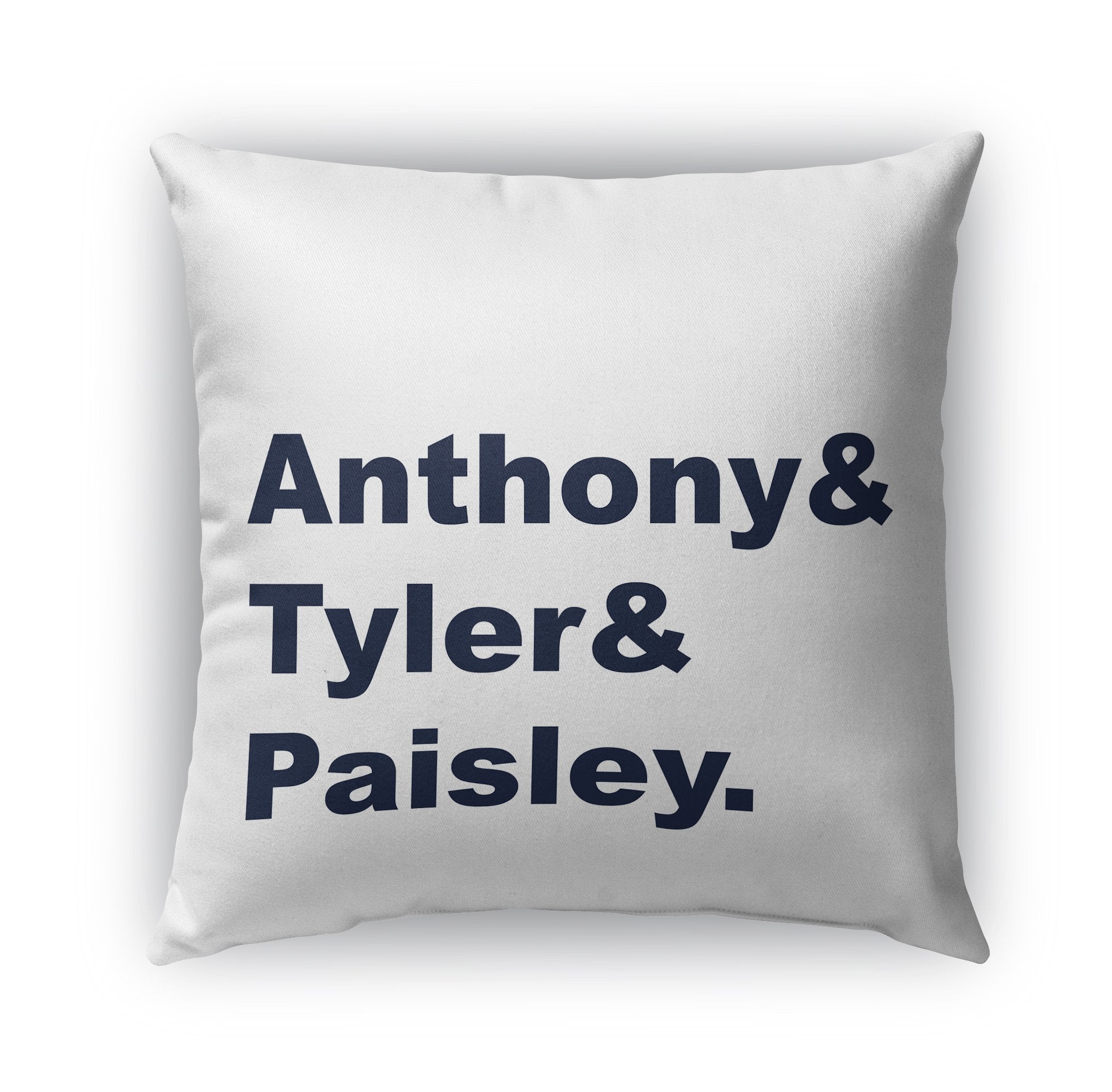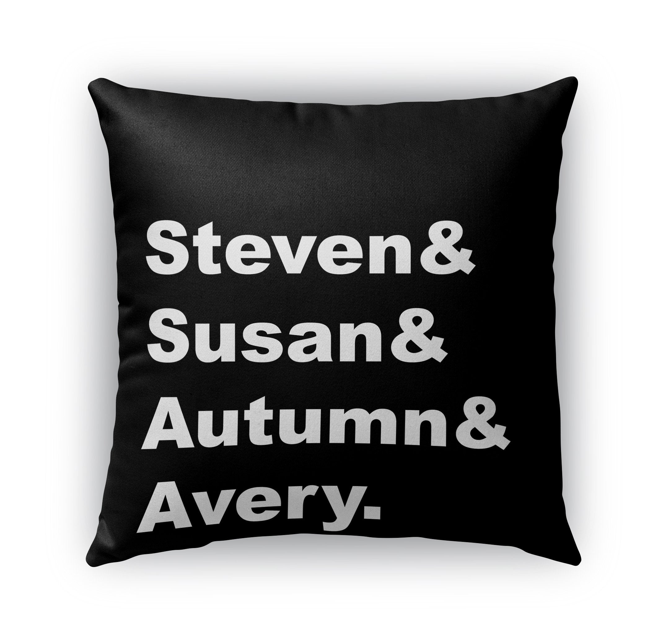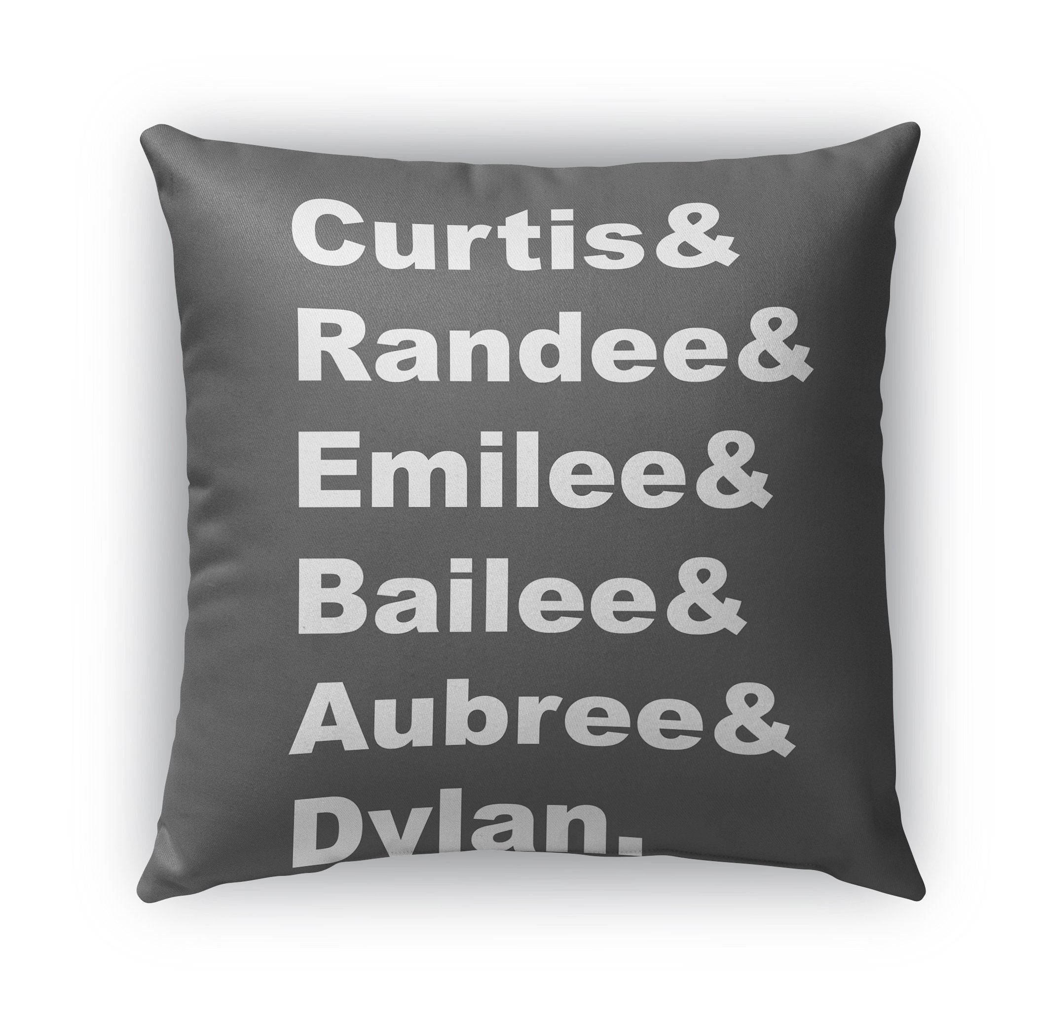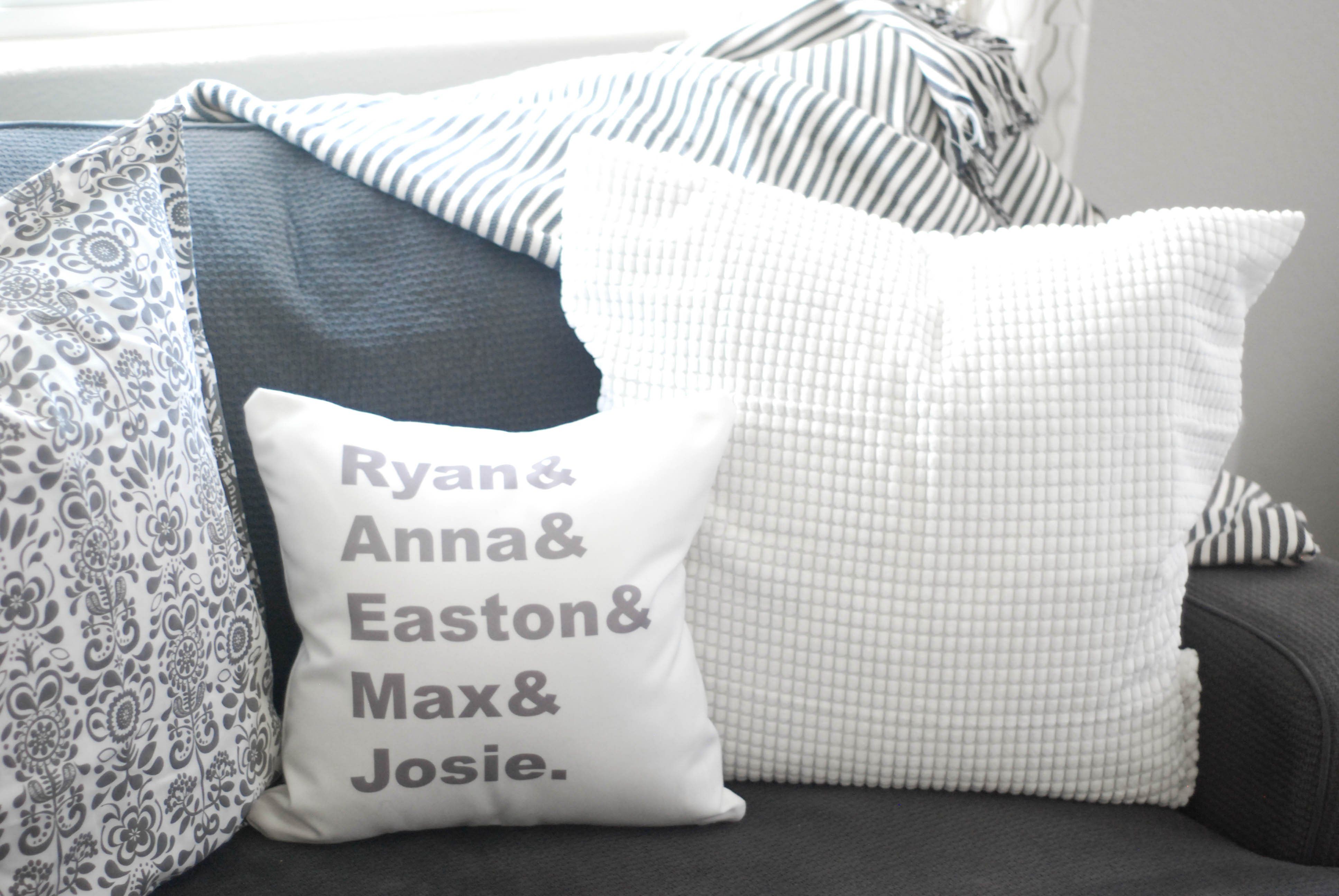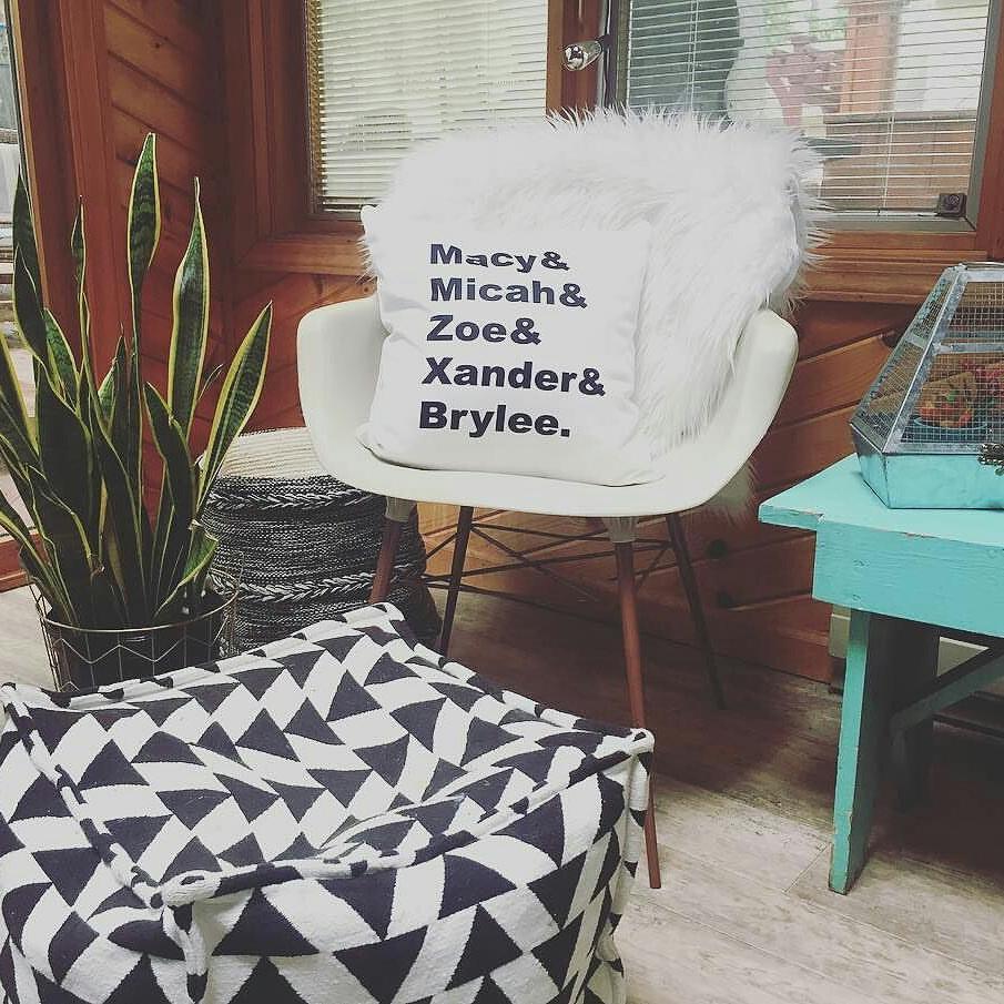 The pillow thtat recognizes all of the members of your family aka your tribe, team, squad. Whatever you might call your crew, this is a must have for your living space. A personalized pillow with all of your kids : grandkids : fur babies.