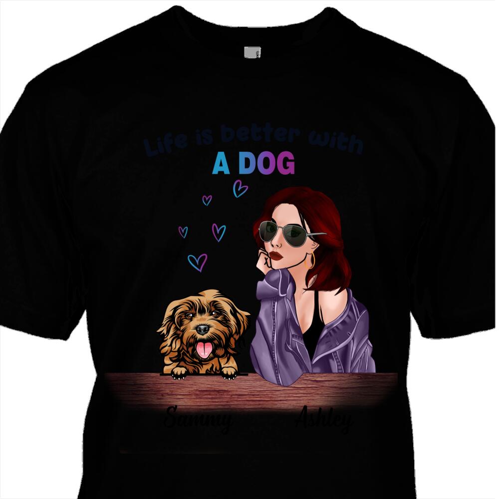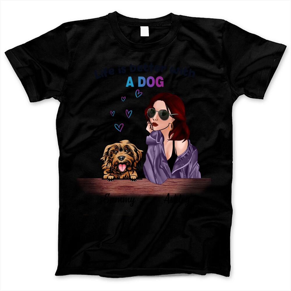 Fashionable Girl Dog Mom Custom Girl’s Style, Dog Breed & Name Personalized T-shirt Gift For Dog Lovers