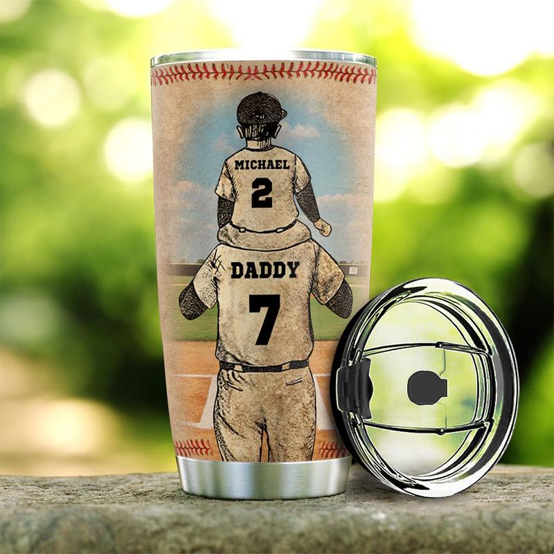 Father And Son Baseball Partner Customize Personalized Stainless Steel Tumbler