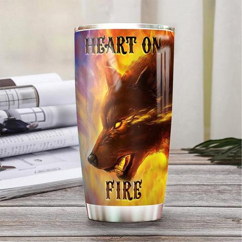 Fire And Ice Wolves Stainless Steel Tumbler, Personalized Tumblers, Tumbler Cups, Custom Tumblers