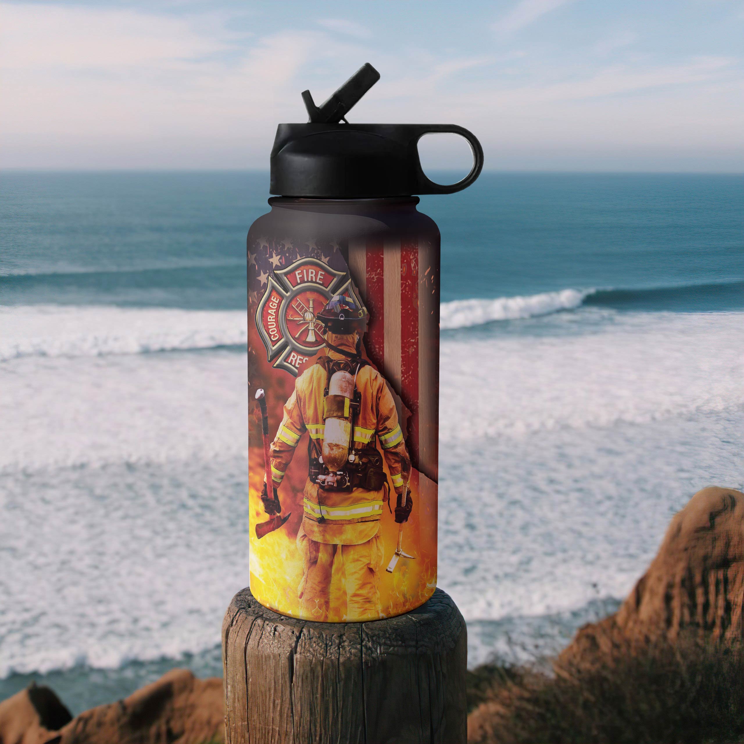 Firefighter Personalized Hha2010014 Stainless Steel Bottle With Straw Lid