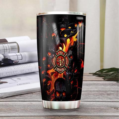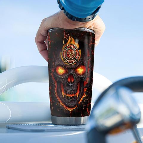 Firefighter Skull Stainless Steel Tumbler, Personalized Tumblers, Tumbler Cups, Custom Tumblers