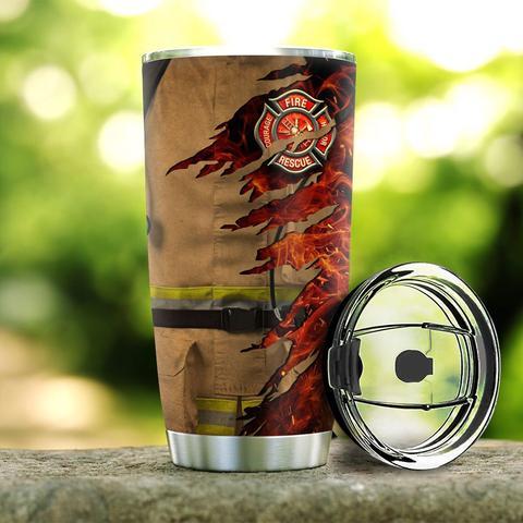 Firefighter Yellow Uniform Old Stainless Steel Tumbler, Personalized Tumblers, Tumbler Cups, Custom Tumblers