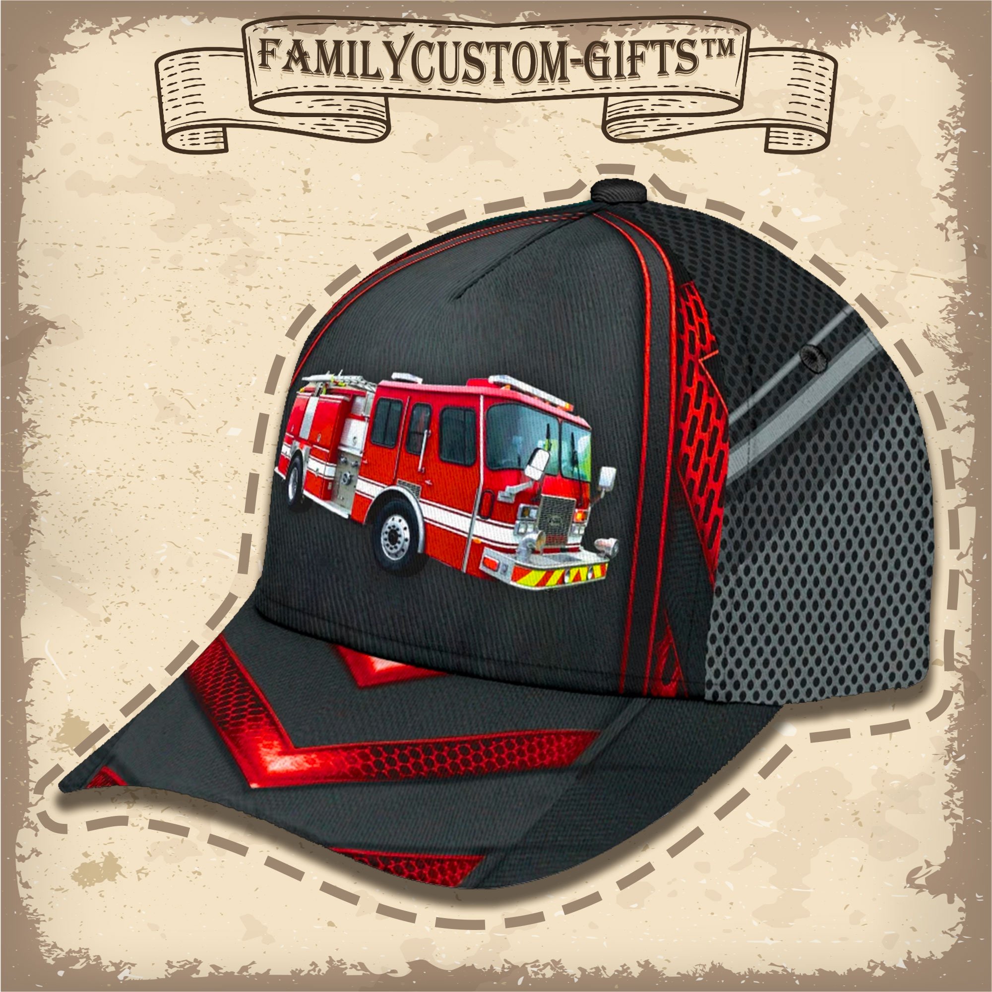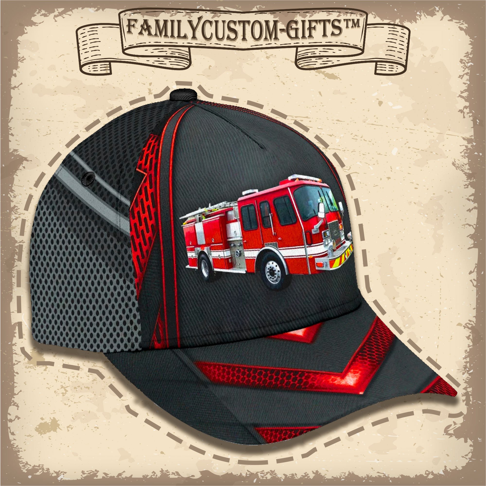 Firetruck Fire Truck Custom Hats For Men & Women 3D Prints Personalized Baseball Caps
