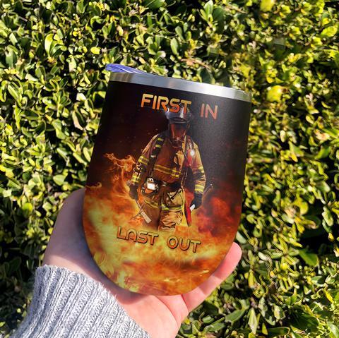 First In Last Out Firefighter Wine Tumbler, Gift For Firefighter Wine Tumbler, Personalized Tumblers, Tumbler Cups, Custom Tumblers