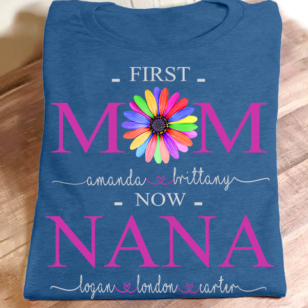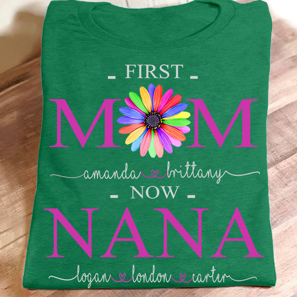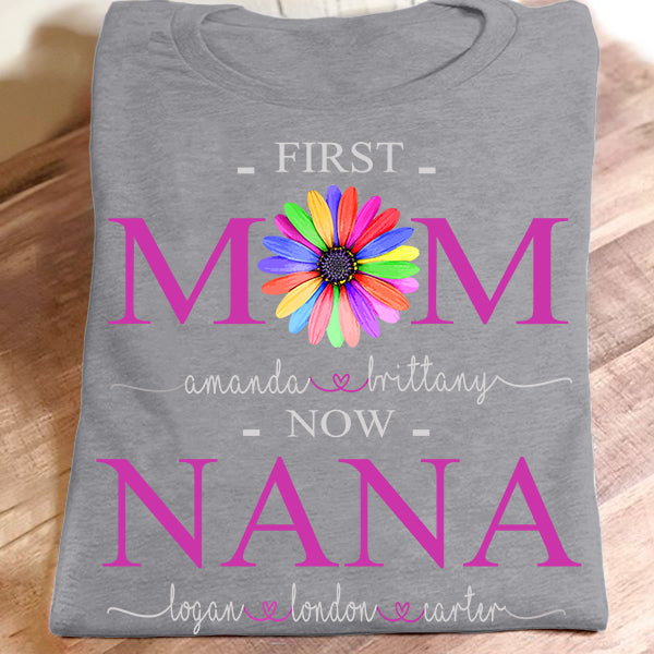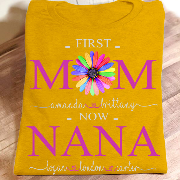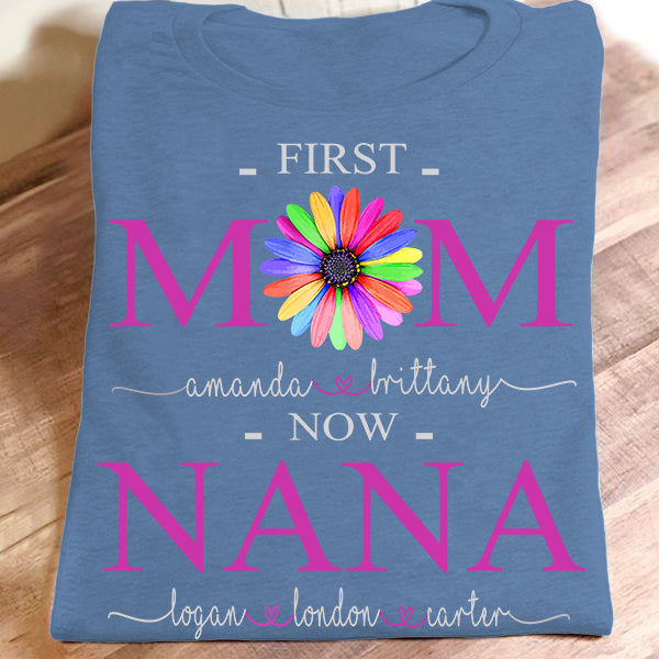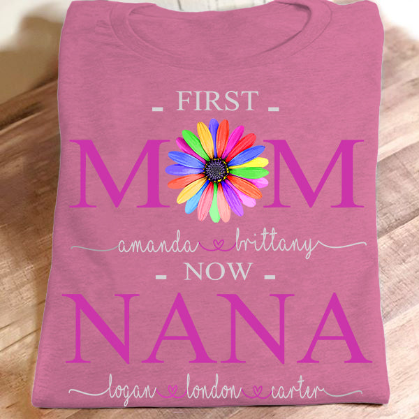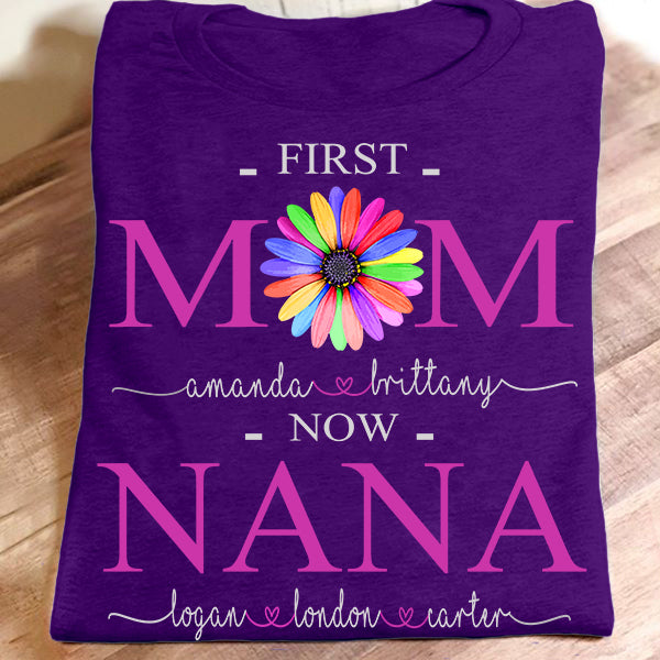 First Mom Now Nana – Color Flower | Personalized T-Shirt