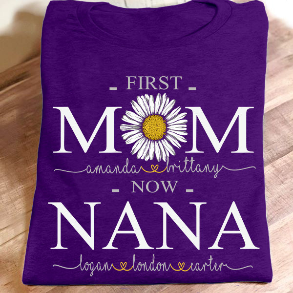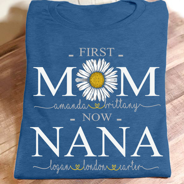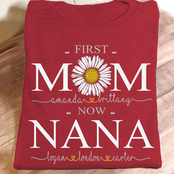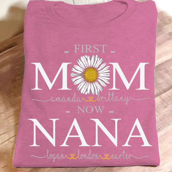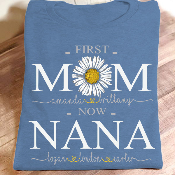 First Mom Now Nana – Daisy Art | Personalized T-Shirt