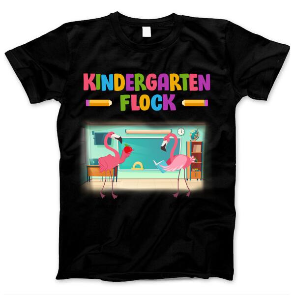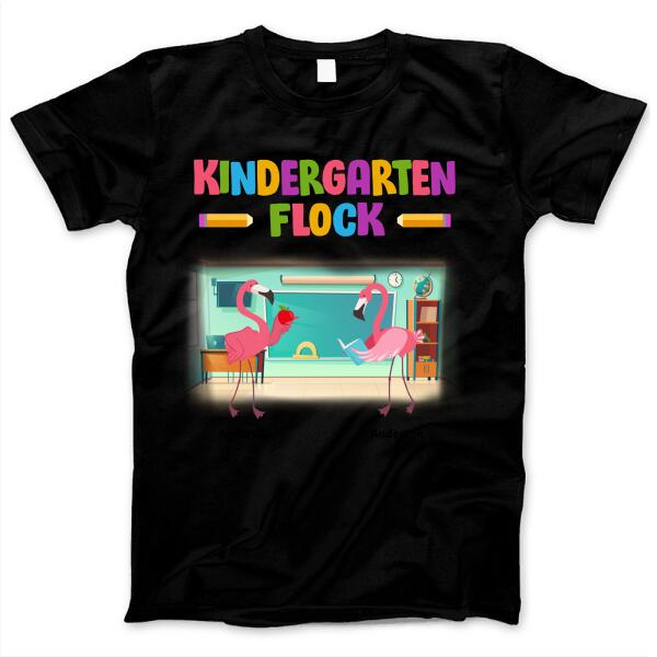 Flamingo Flock Teacher Staff Back To School Elementary School Kindergarten Gift For Teacher Custom Name Personalized T-Shirt