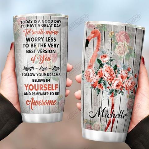 Flamingo Good Day Personalized Stainless Steel Tumbler, Personalized Tumblers, Tumbler Cups, Custom Tumblers
