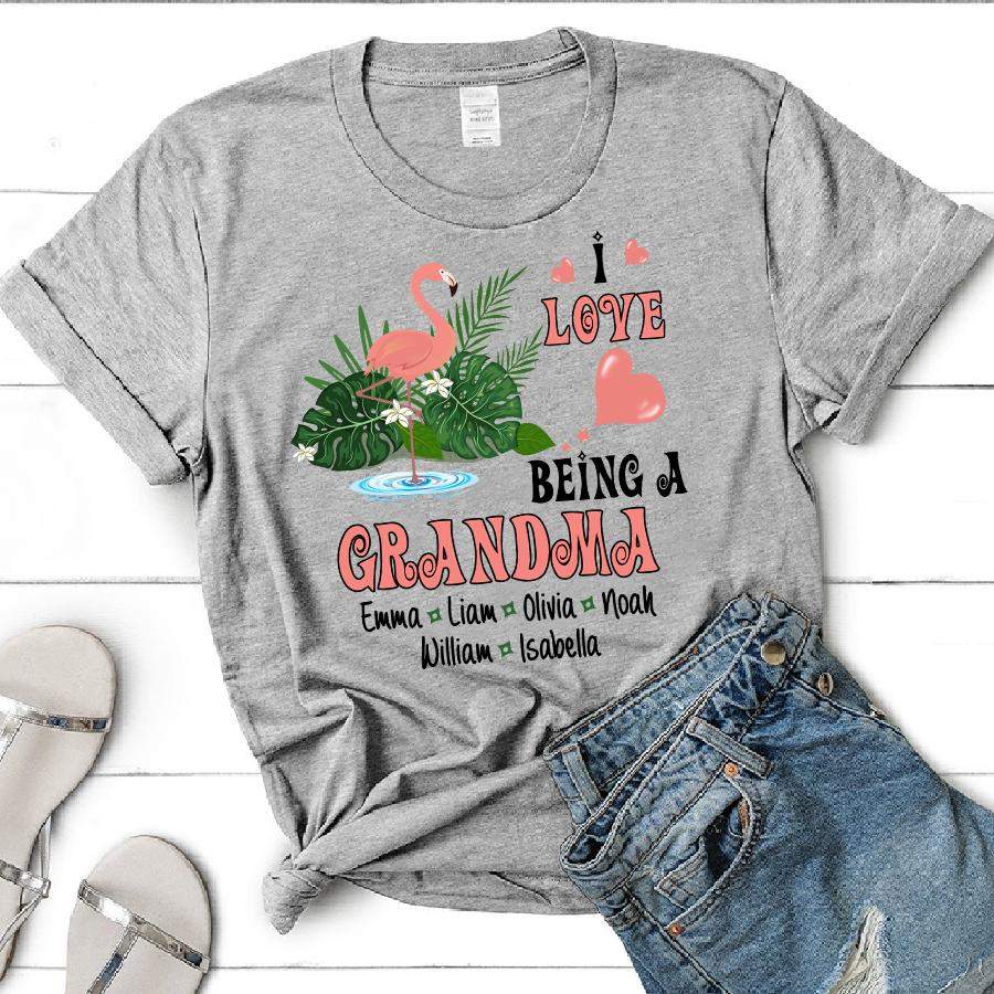 Flamingo I love being a Grandma | Personalized T-Shirt